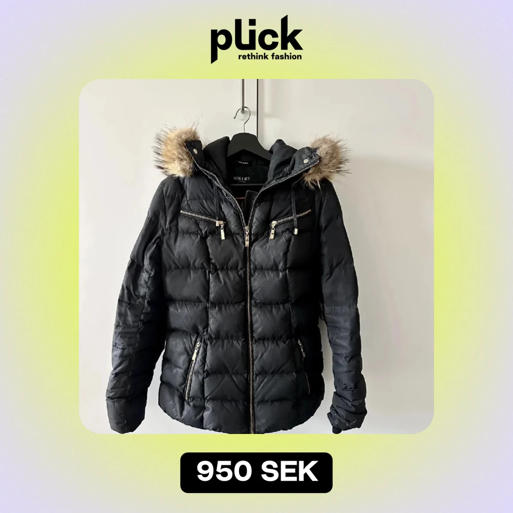 Svart jacka från Hollies med huva och äkta pälskant. Jackan har två fickor på sidorna och en innerficka. Jackan har även en dragkedja framtill. Saknar bälte. Ordpris: 4500-5000kr. Passar M-XL.