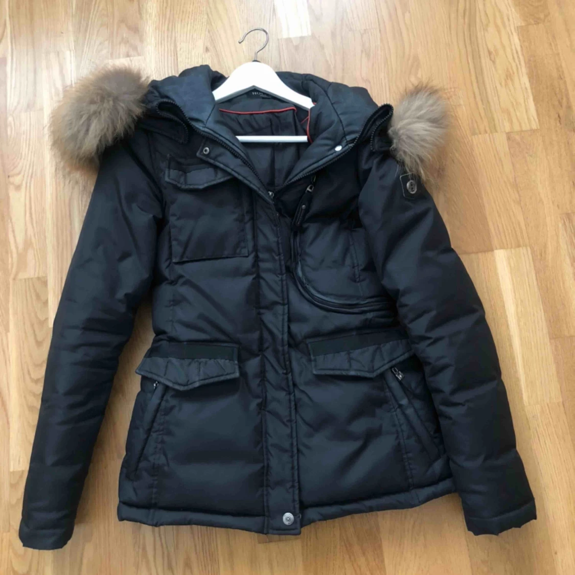 Hollies jacka storlek 38 liten i storleken. Hål vid baksidan av ärmen som går att laga. Väll använd ändå. Köpt för 4500kr för året:)