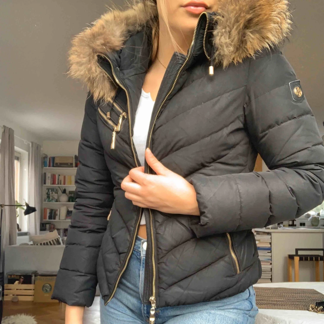 Säljer min Hollies Chatel jacka i storlek 34 då den är för liten. Inköpt för 3499 kr. Äkta päls och dun. Mycket bra skick.