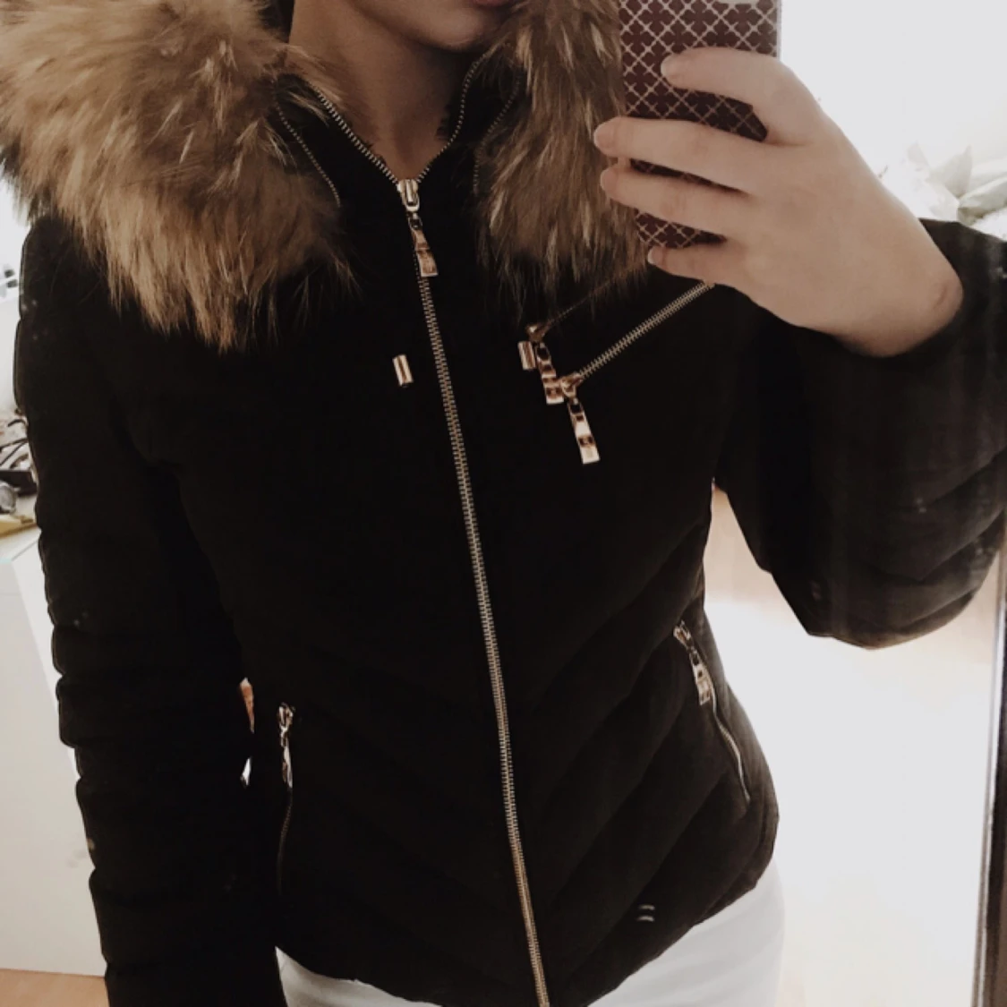 Äkta päls! Färg: svart med gulddetaljer på kedjor. STORLEK 34. Köpte denna jacka i Stockholm för 1 och ett halvt år sedan. Använt en halv vinter, därför är den i så pass fint skick. Priset kan ändras beroende på erbjudande.