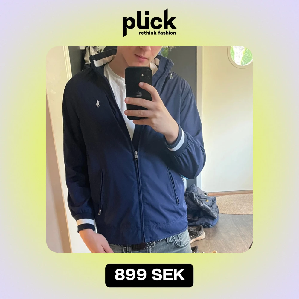 Säljer en snygg mörkblå vindjacka från Ralph Lauren. Jackan har dragkedja och långa ärmar med vita detaljer vid ärmsluten. Perfekt för vår och höst! 🌀storlek L ungdom passar xs