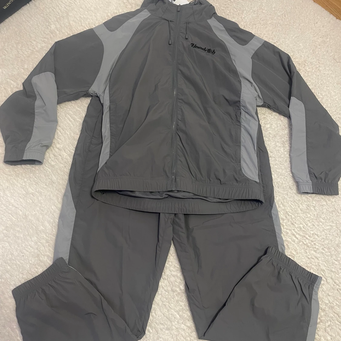 Helt oanvänd pga att den inte passar min man, dock är prislapparna borttagna. Storlek M men kan passa som L. Tracksuiten finns inte kvar att köpa i butik