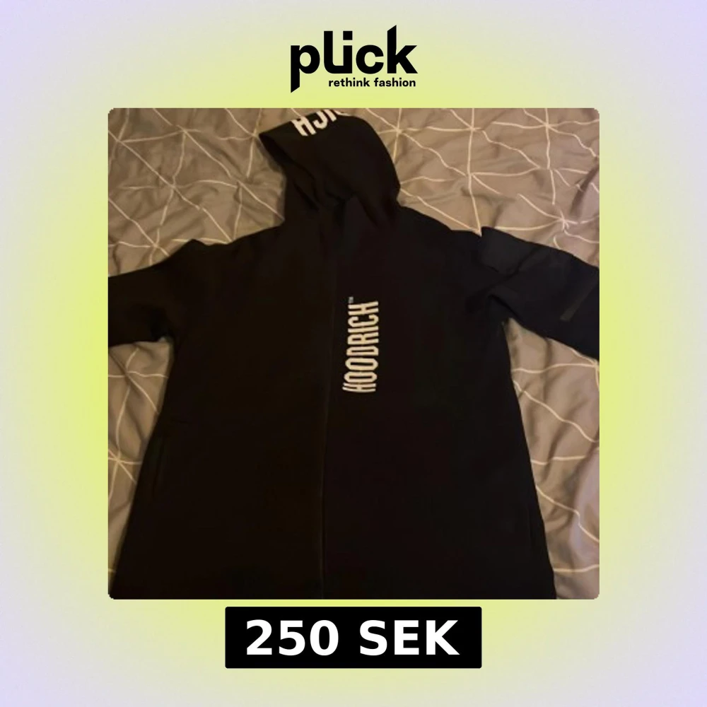 Svart hoodiejacka från Hoodrich med vit logga tryckt längs dragkedjan och på huvan. Jackan har lång ärm och dragkedja framtill. Perfekt för en streetwear-look.