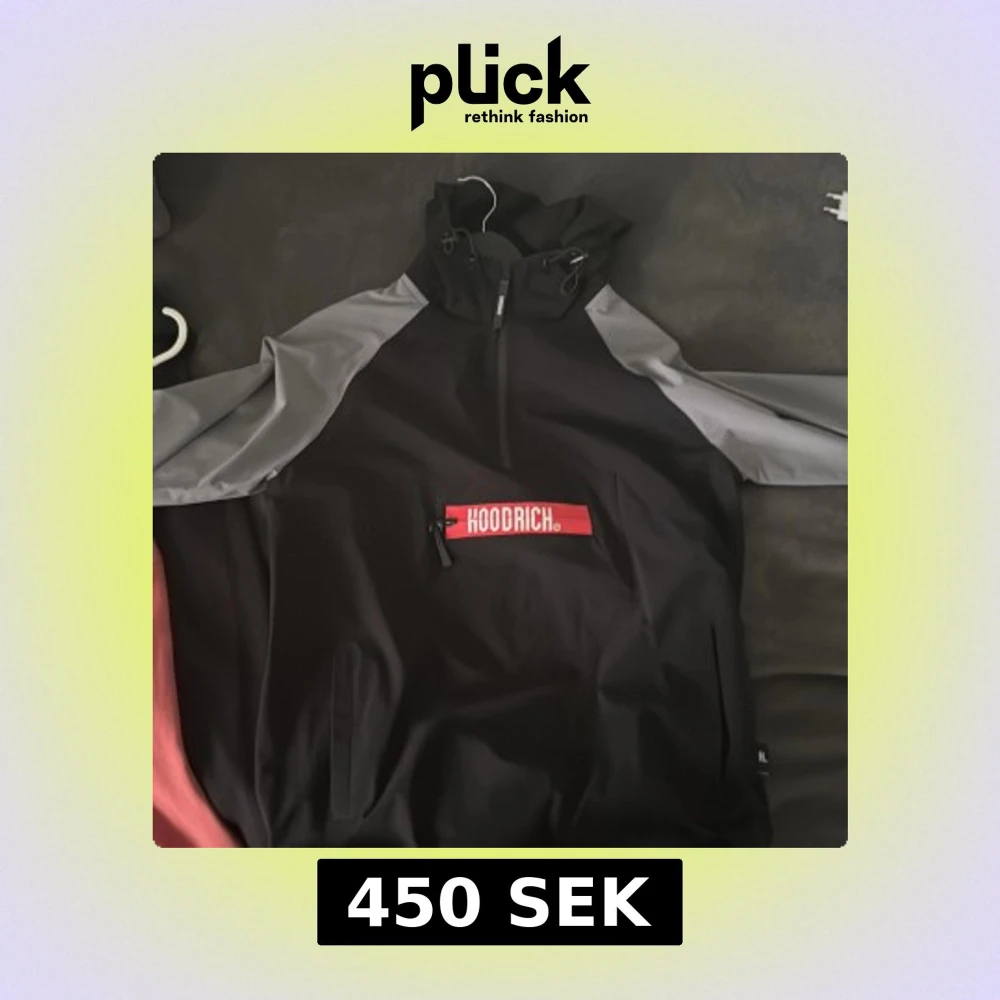 Snygg vindjacka från Hoodrich i svart med grå ärmar och röd detalj med logga på bröstet och ryggen. Jackan har huva, dragkedja framtill och en stor ficka med dragkedja. Perfekt för dig som gillar streetwear och vill sticka ut.