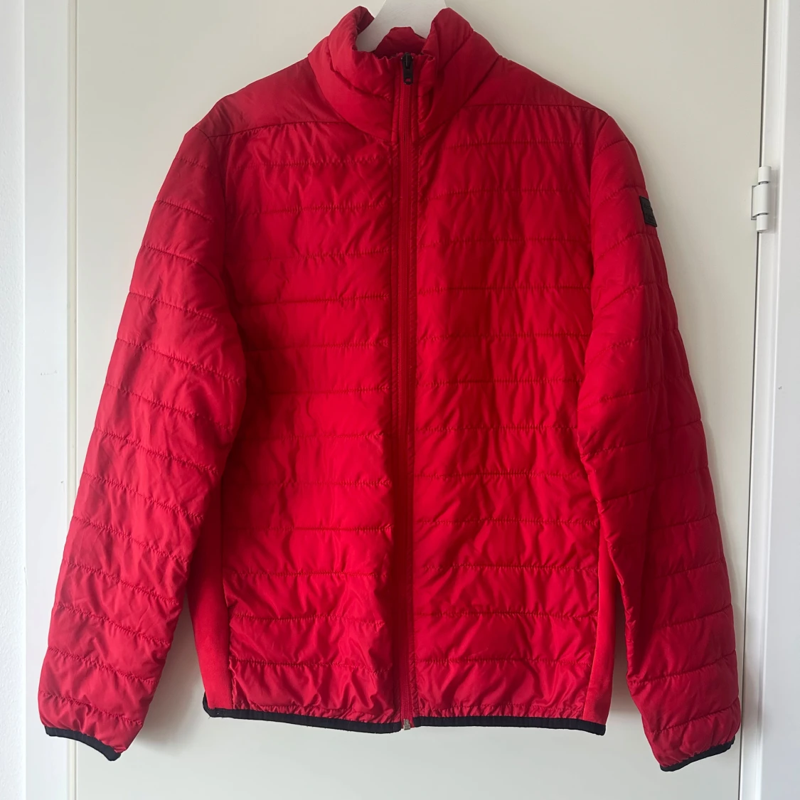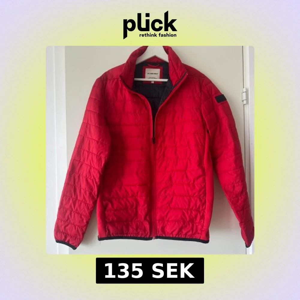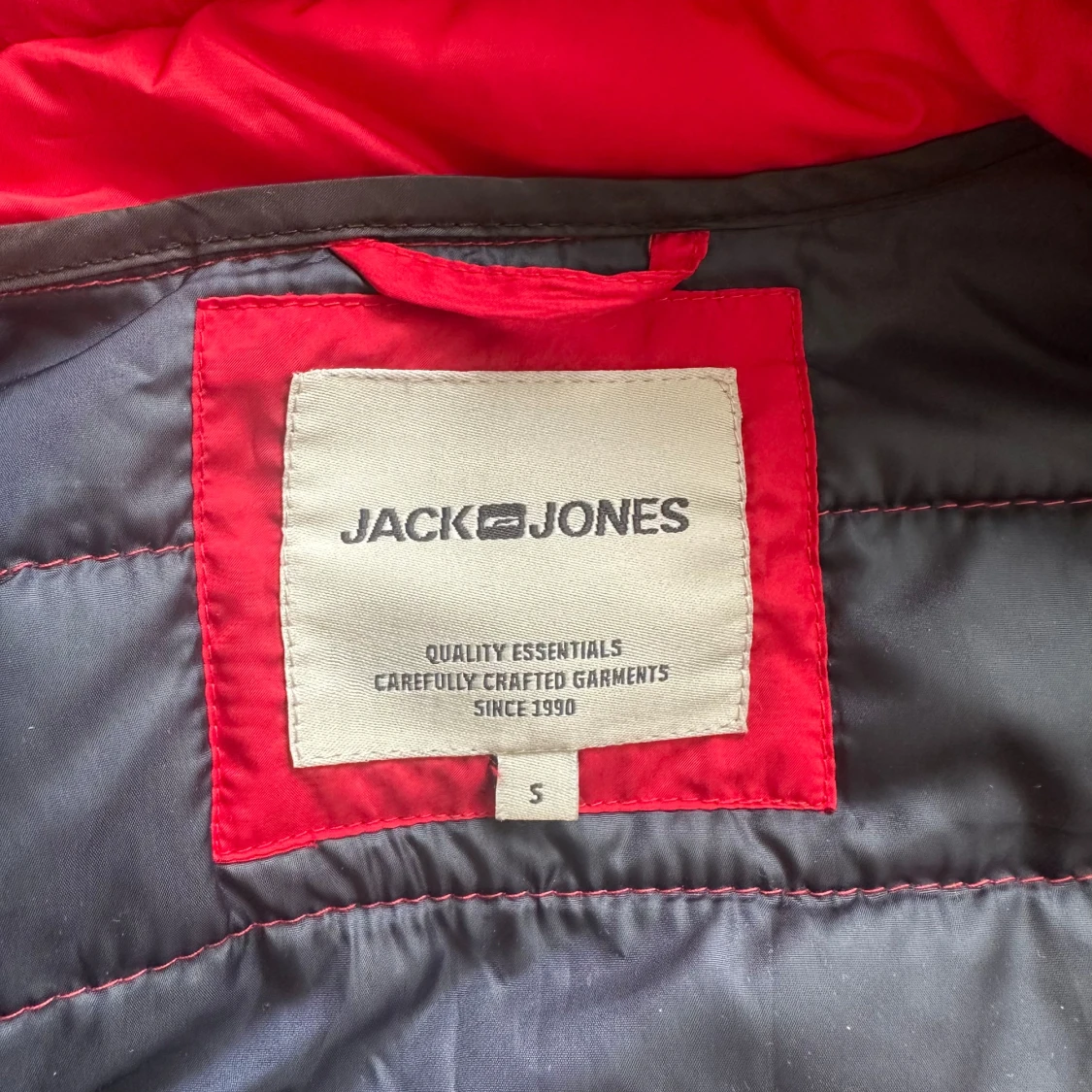 Säljer en röd pufferjacka från Jack & Jones i storlek S. Jackan har quiltad design, med fickor samt två fickor på insidan. Knappt använd så den är i mycket fint skick!