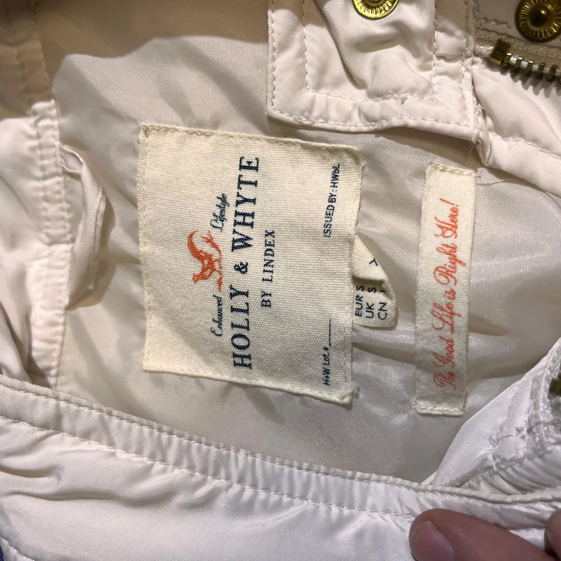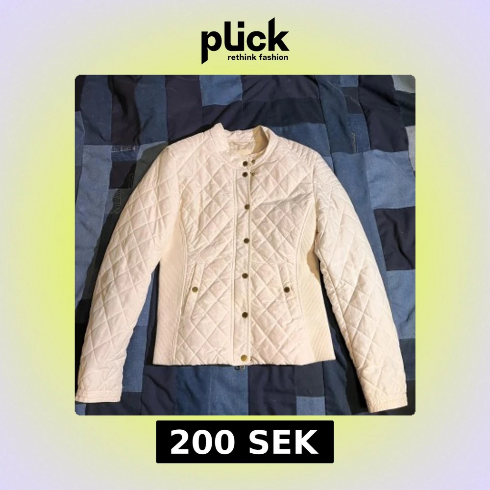 Snygg vit quiltad jacka med både dragkedja och knappar framtill. Jackan har en stilren design med långa ärmar och ribbade sidopaneler för extra komfort. Perfekt för kyligare dagar. Tyvärr så har sidopanelerna blivit noppriga med året men inget som märks under användning eller syns. Dm vid frågor