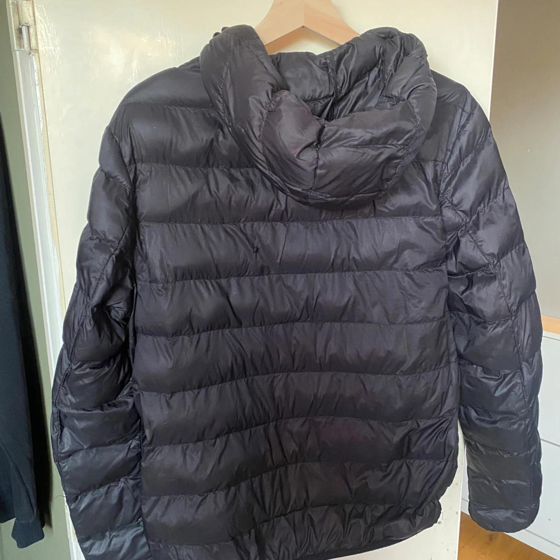 En väl omhändertagen Lyle and Scott pufferjacka. Den har ett pyttelitet hål/snitt på ryggen, men ingenting som märks tydligt. Jackan kostade 900 kronor som nyköpt