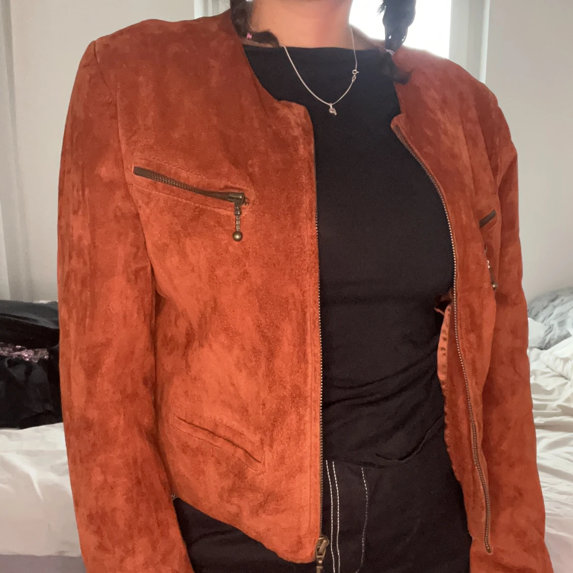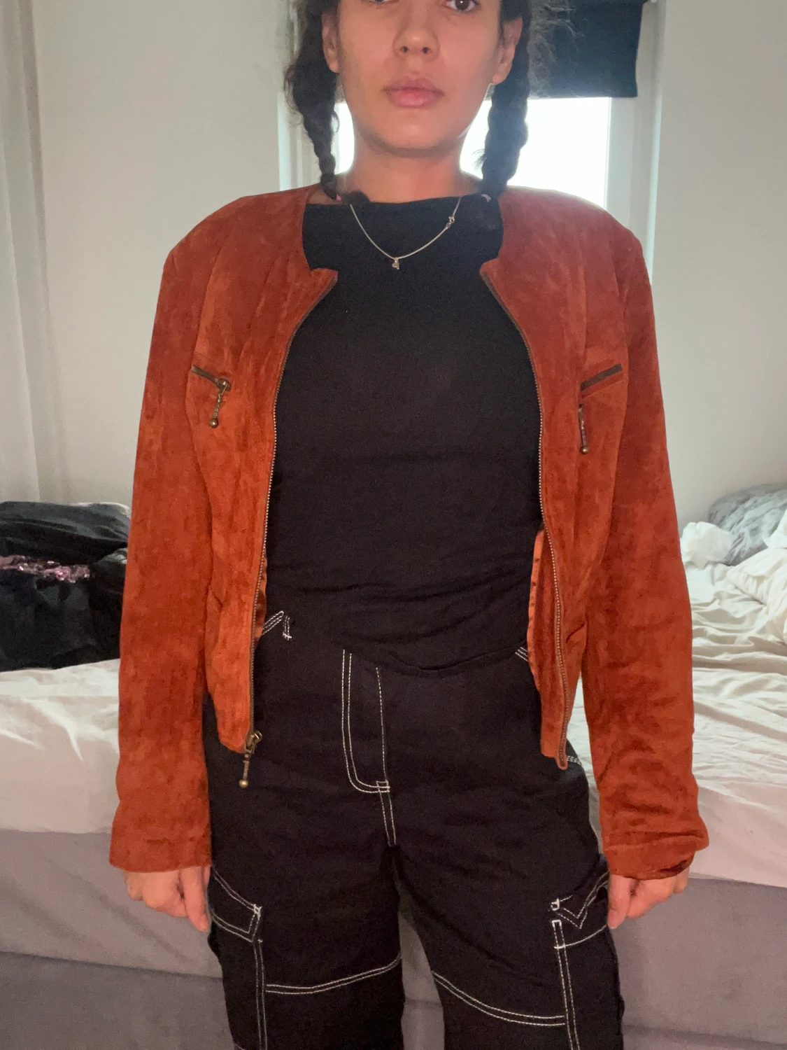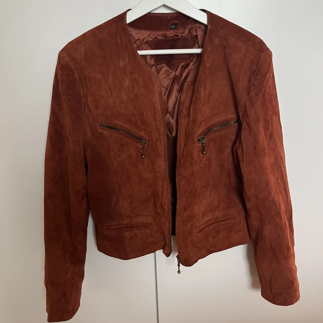 En härlig höstjacka i mocka! Köpt på en second hand butik för 400kr och men kommer ej till användning. Den sparsamt använd!