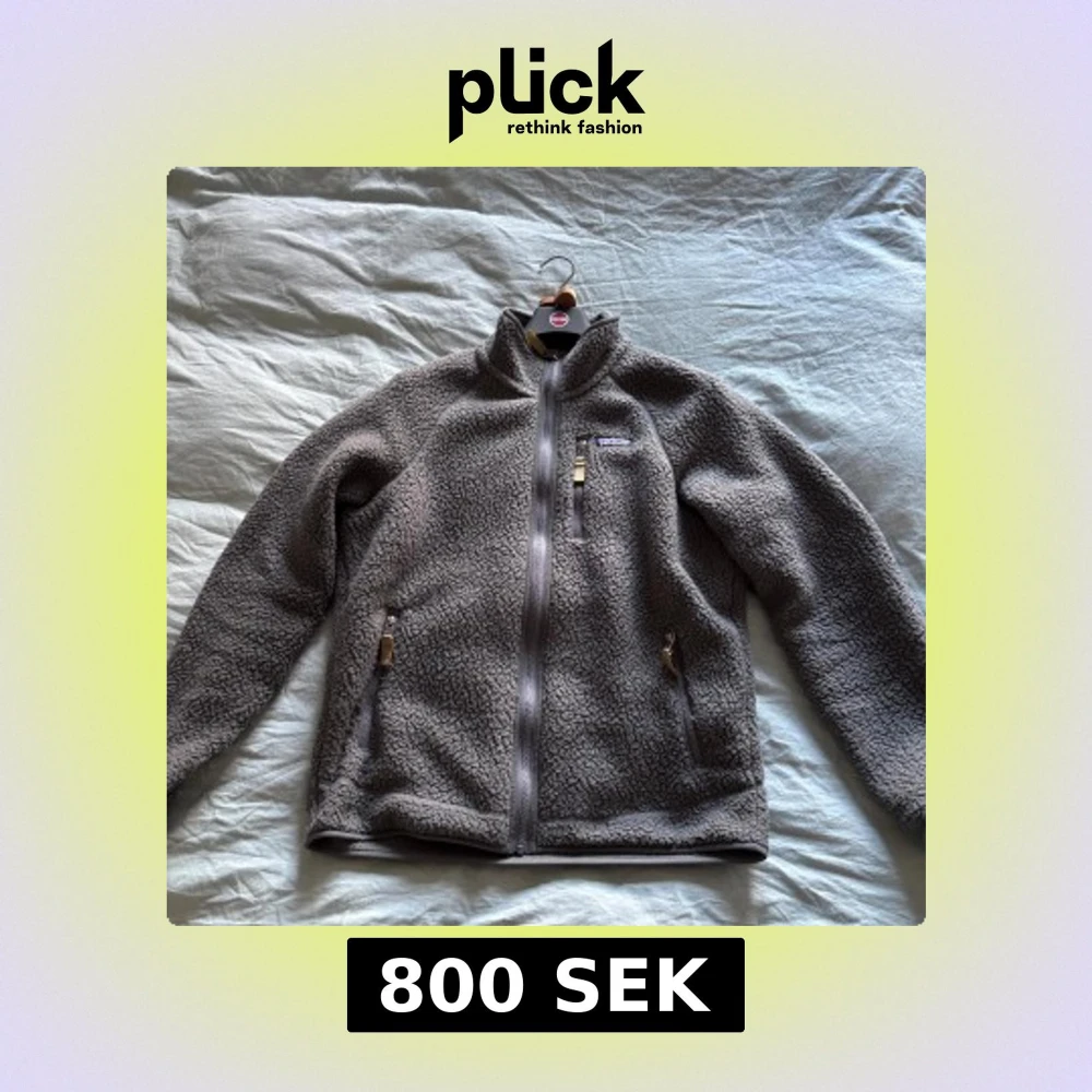 Mysig grå teddyjacka från Patagonia med hel dragkedja framtill, hög krage och tre fickor med dragkedja. Jackan är tillverkad i fleece. Knappt använd och väldigt bra skick.