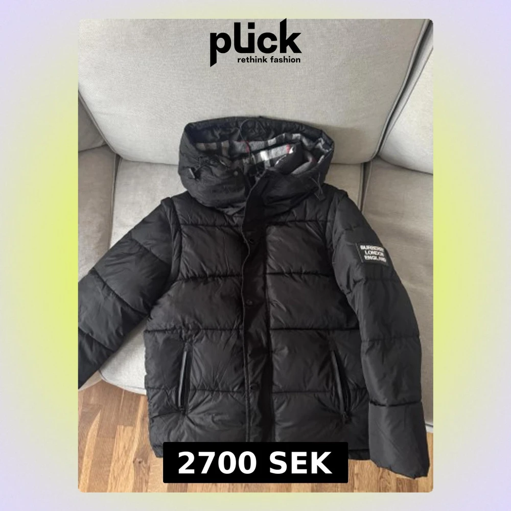 Säljer en svart pufferjacka från Burberry med klassiskt rutigt foder i huvan och patch med Burberry London England på ärmen. Jackan har dragkedja och knappar framtill, två fickor med dragkedja och justerbar huva. Perfekt för kalla dagar. Storlek Medium använd typ 2 veckor inga skador eller märken osv. Säljs för 2700kr men priset går att diskutera eller öppen för byten såsom (moncler)