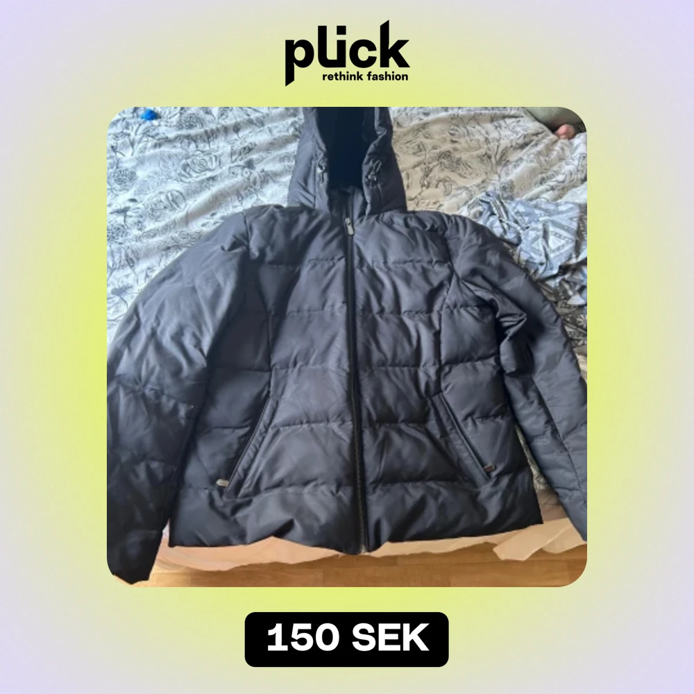 En väl använd jacka men i väldigt bra skick. Snygg och passar att ha på hösten och vintern. Storlek L men liten L skulle jag säga. Tjejen på bilden är 1,56.