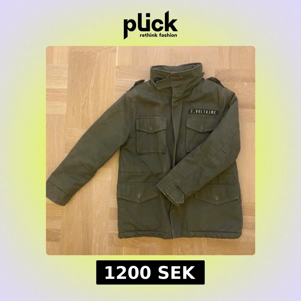 Snygg militärgrön parkajacka från Zadig & Voltaire med broderad färgglad vinge och texten 'Rock & Roll' på ryggen. Jackan har hög krage, fyra fickor framtill och coola axeldetaljer. Perfekt inför hösten!!!!