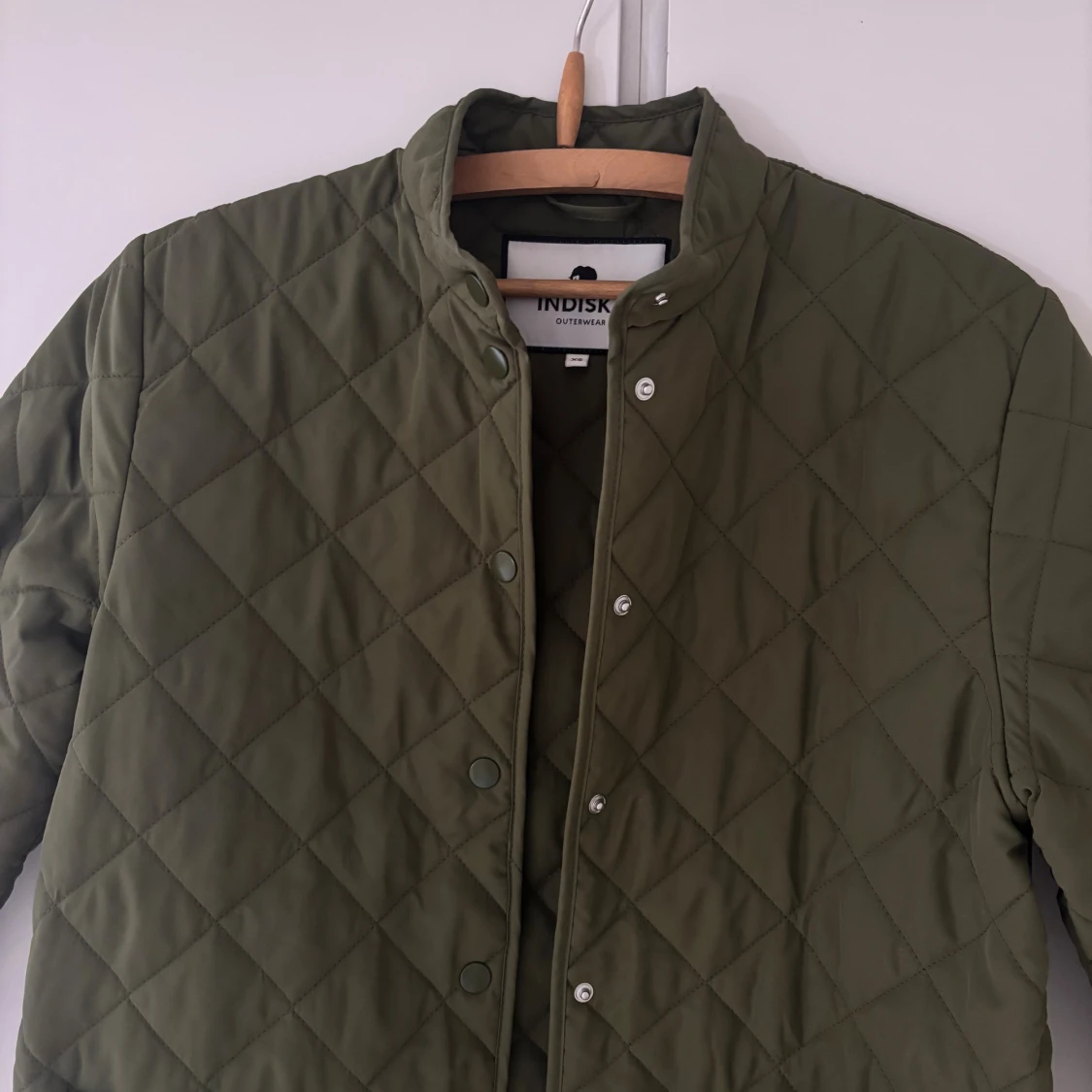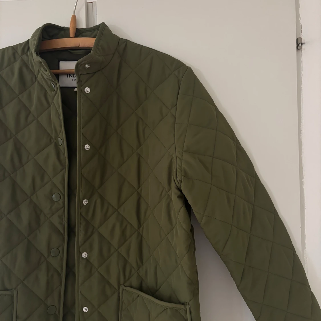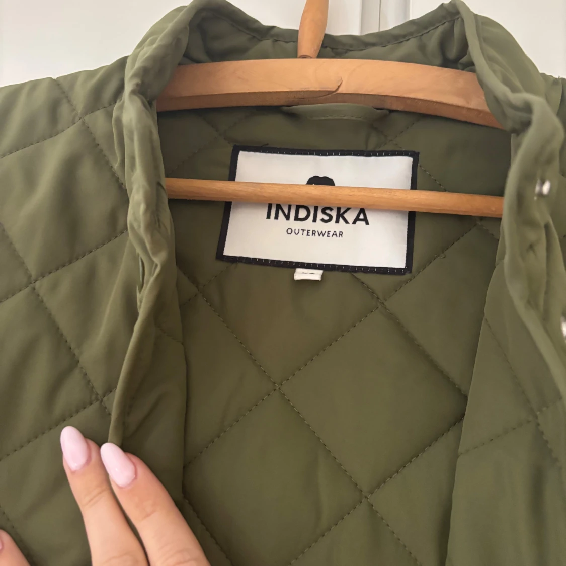 Snygg olivgrön quiltad jacka från Indiska i storlek XS. Jackan har raka linjer, tryckknappar framtill, ståkrage och stora fickor. Perfekt för dig som gillar stilren och trendig look. Materialet är mjukt och lätt, passar bra till lager-på-lager. Inga tecken på användning!