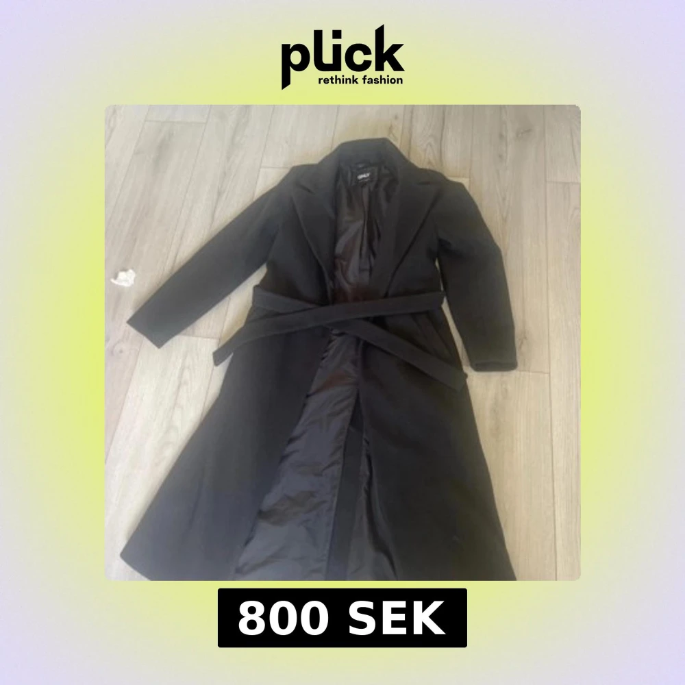 Säljer en svart lång kappa från ONLY i storlek M. Klassisk modell med bred krage, knytbälte i midjan och helfodrad insida. Perfekt för dig som vill ha en stilren och tidlös look under höst och vinter. kostade 1200kr