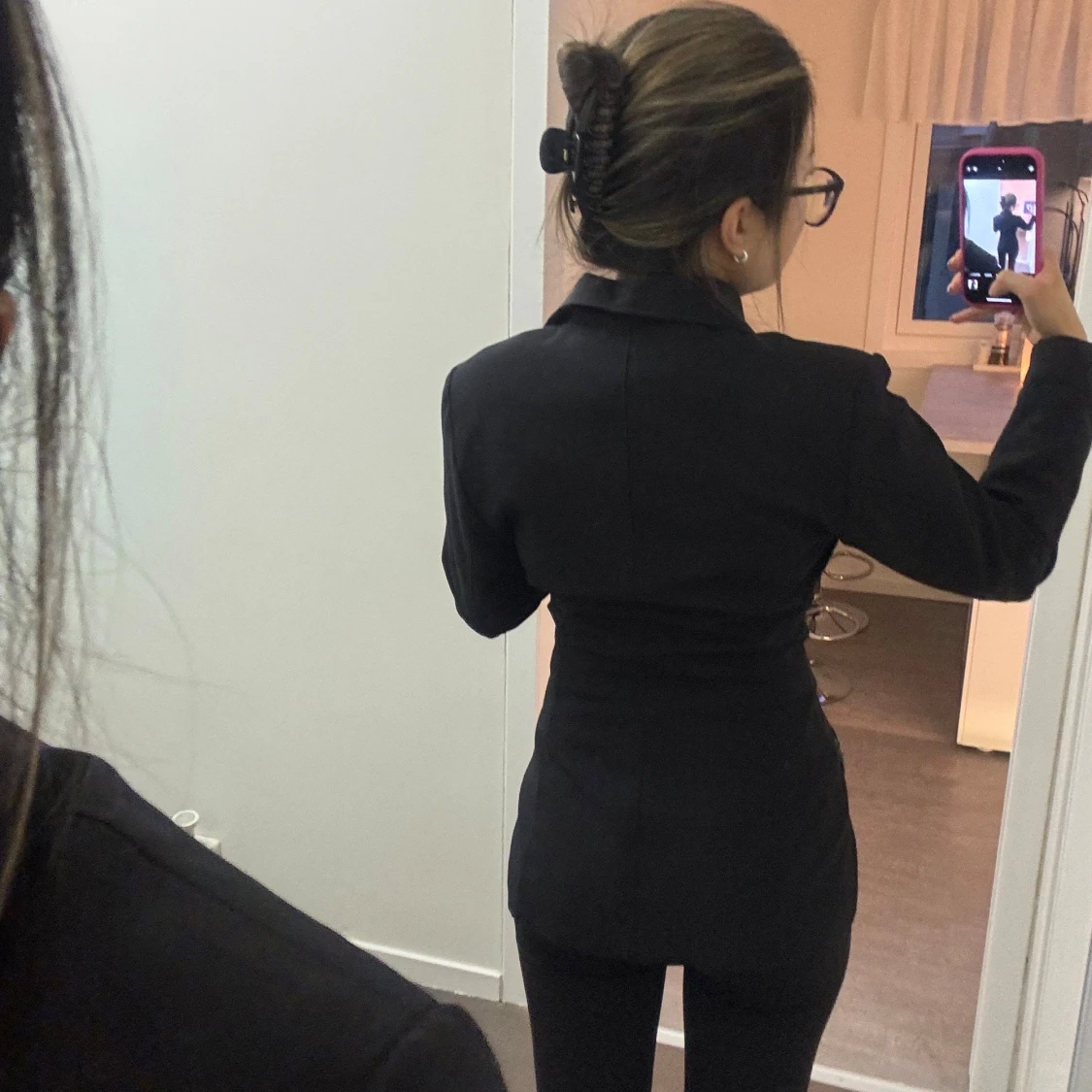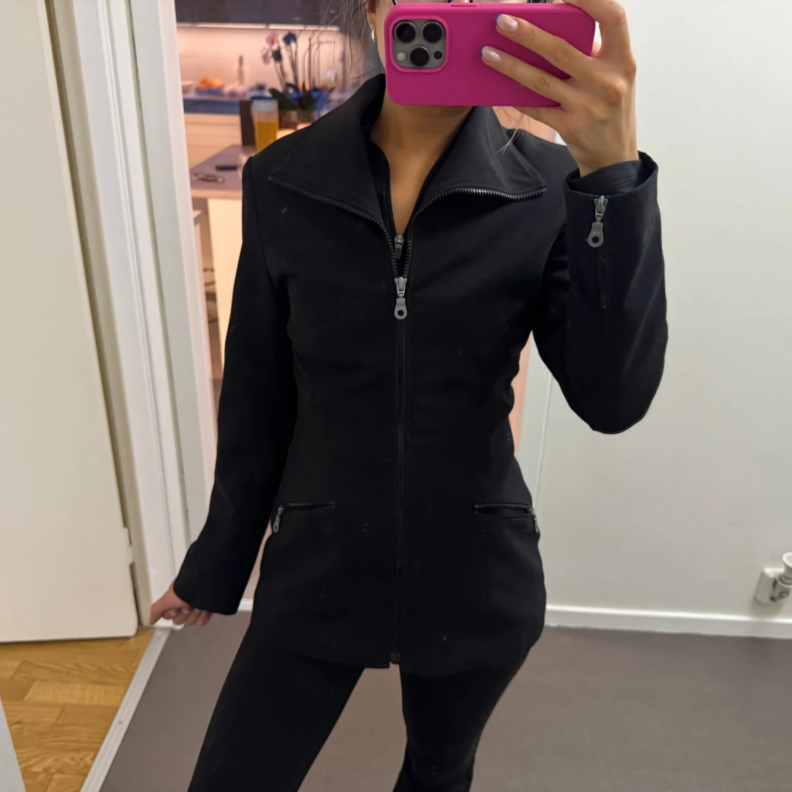 Snygg svart kavaj med markerad krage och hel dragkedja framtill. Jackan har två fickor med dragkedja och långärmad design. Passformen är slim , perfekt för en clean och stilren look.