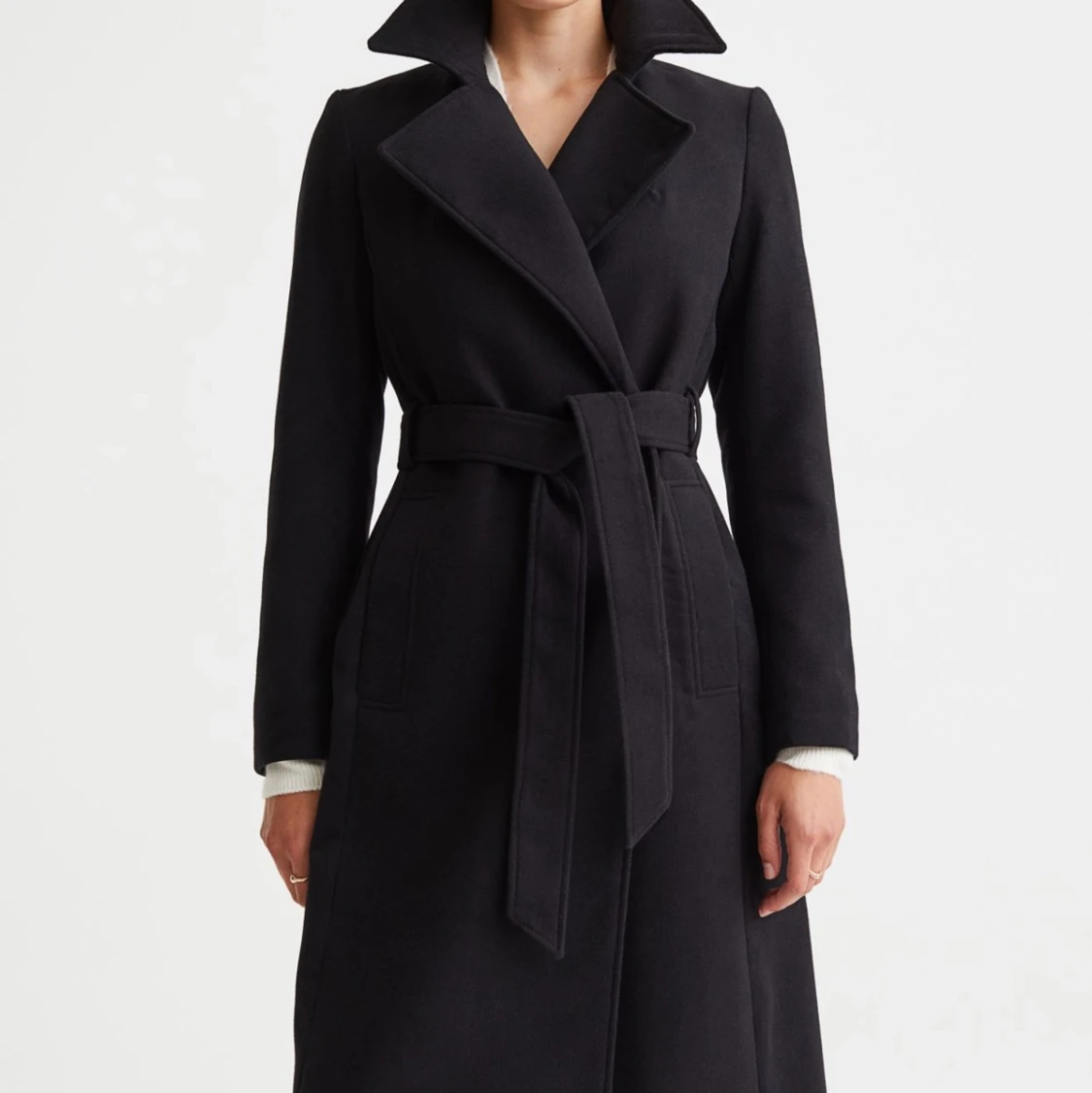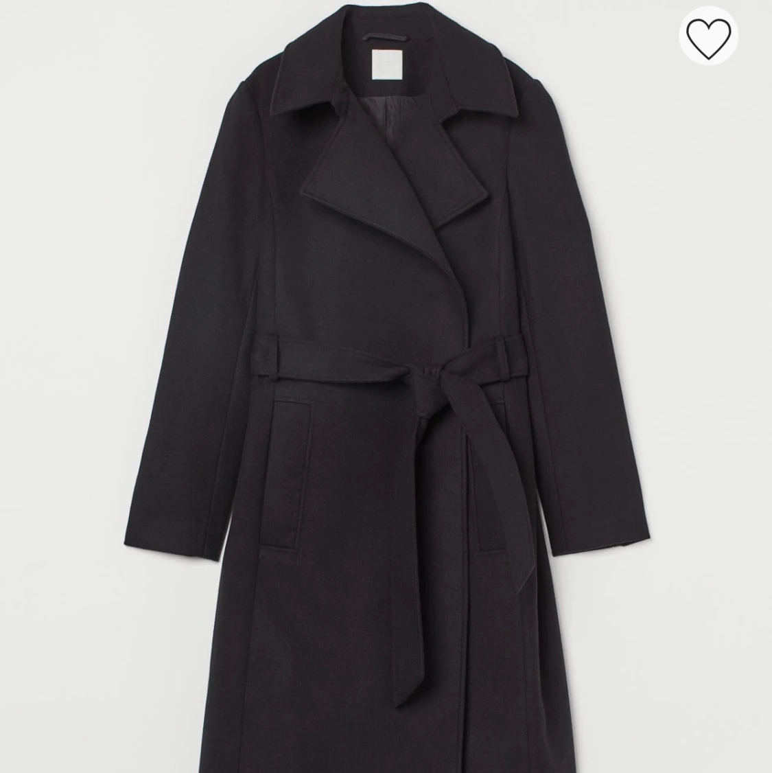 Säljer denna svarta långa kappa ifrån H&M, köptes för drygt ett årsedan, så bra skick. Det finns två knappt på insidan av kappan som man kan knäppa, så det är inte bara bandet runt som håller kappan stängd! Nypris 499 kr.