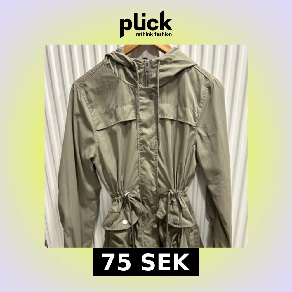 Militärgrön vår/höstjacka med huva, dragkedja, tryckknappar framtill, snörning och fickor. Storlek XS men passar även S. 75kr💚🌾🍂