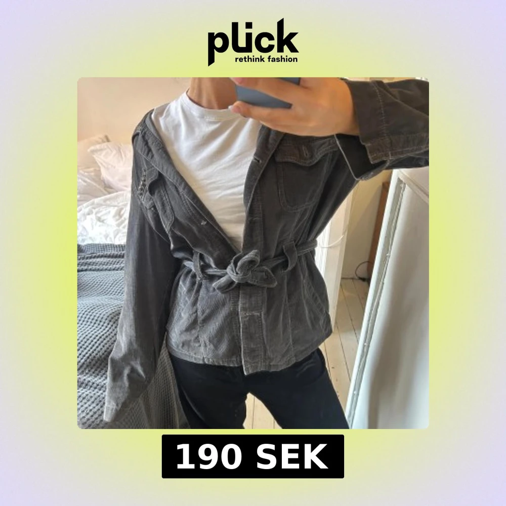 Superskön o snygg grå höstjacka i manchestertyg, köpt i NYC på en secondhand, har klippt av knapparna men brukar knyta den☺️💕bara o skriva om man har frågor!!