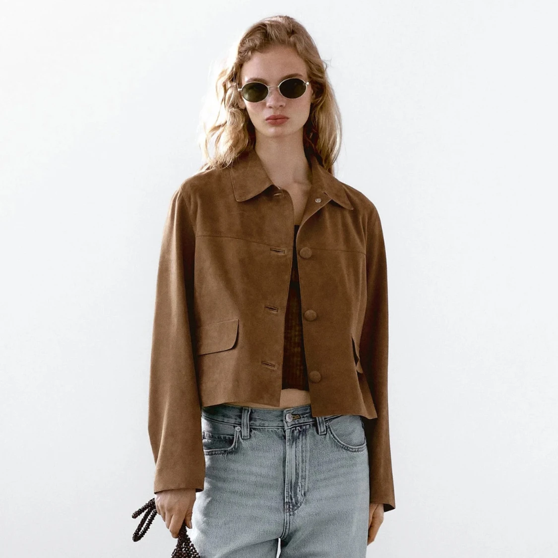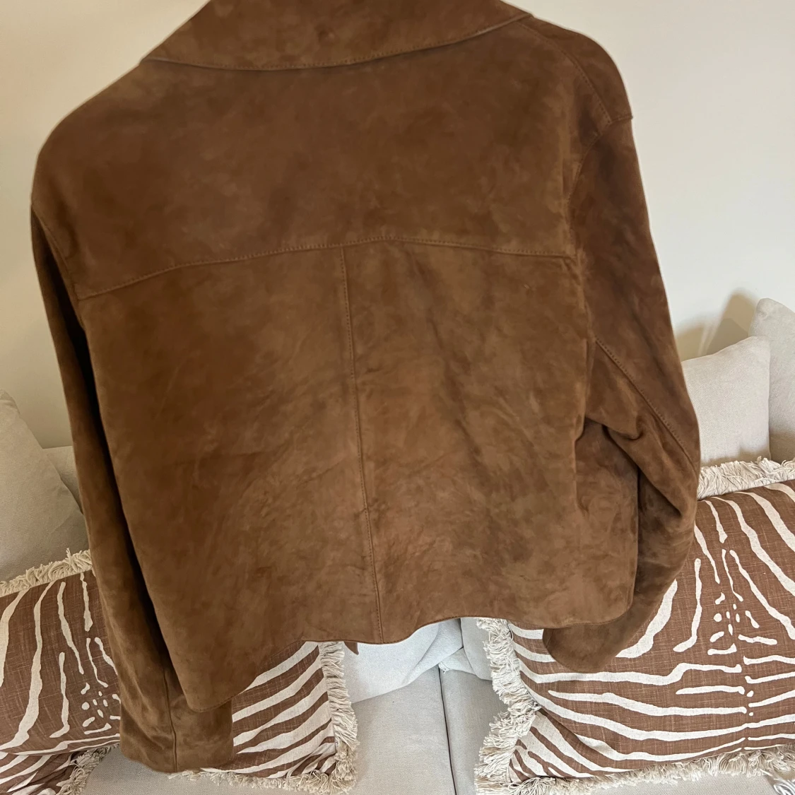 Såå fin mockajacka från massimodutti. Den är i getskinn med mockafinish. Strl XS men passar mig som är en S också jätte fint. Använd fåtal gånger🤎🤎Nypris 3500kr