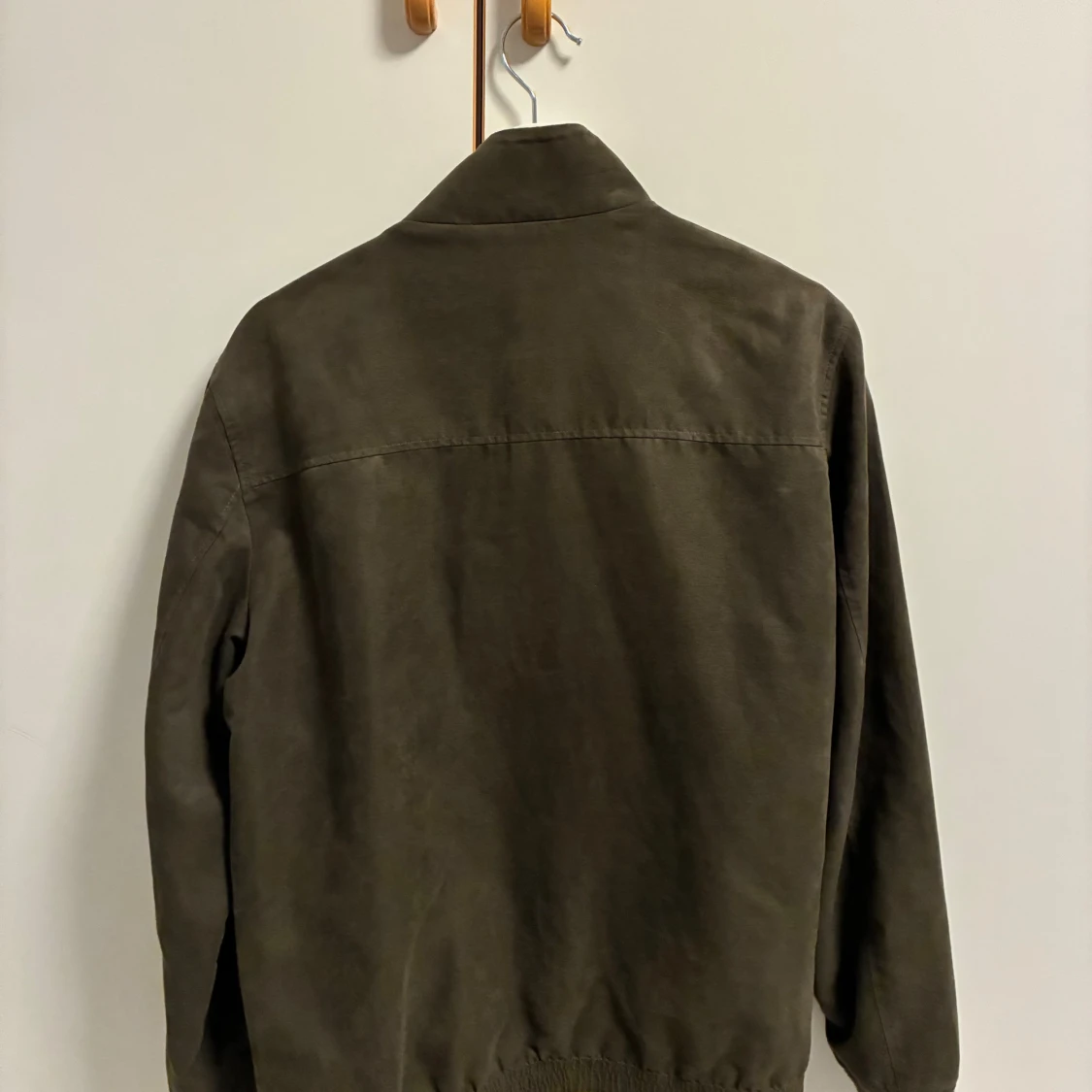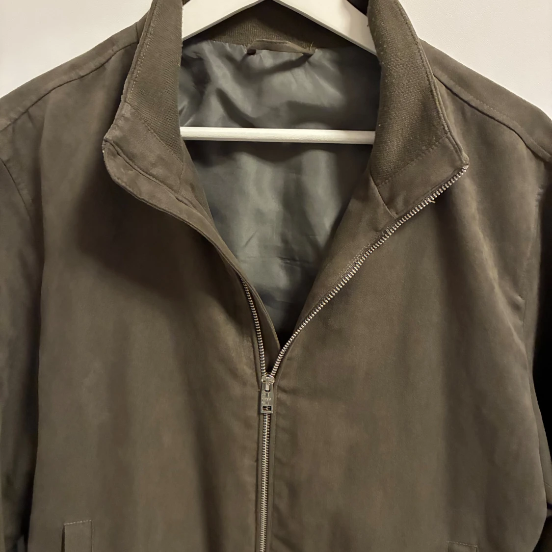 Snygg olivgrön mocka jacka från MNG med klassisk krage och dragkedja framtill.
