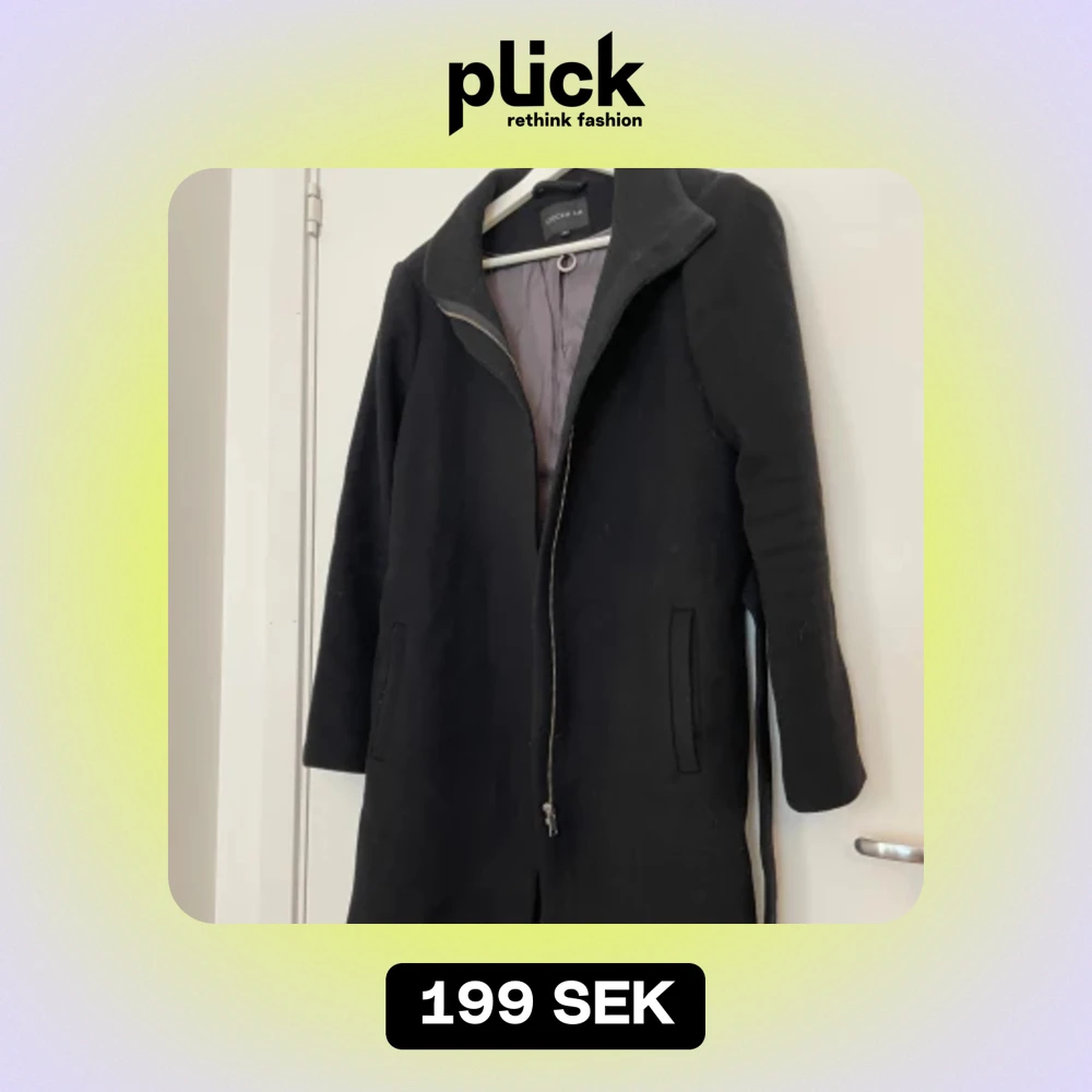En svart kappa från Stockholm Dragkedja och ett midjebälte