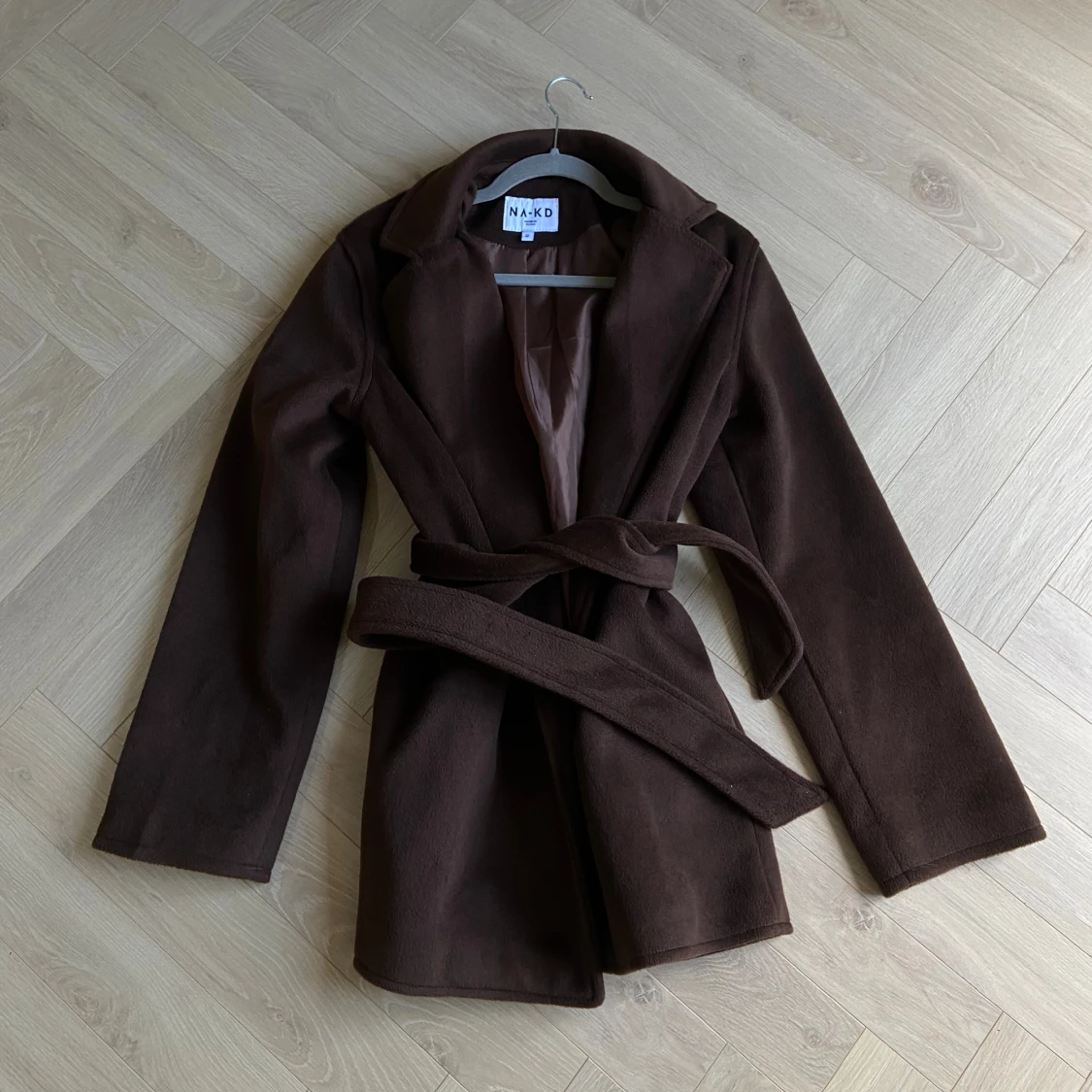 Brun kortare kappa från nakd. Använd en gång i 30 min. Som ny. Nypris 900kr Storlek 32 oversize, så mer som en 34a Slutsåld på nakd. Finns att hämta i Vasastan eller fraktas i Sverige mot betalning ☺️