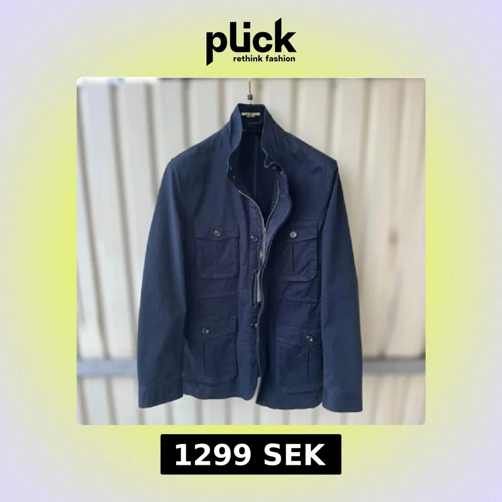 Snygg marinblå jacka från Gutteridge med fyra stora fickor framtill, dragkedja och knappar. Jackan har hög krage och är tillverkad i bomull. Perfekt för dig som gillar stilren och klassisk look.