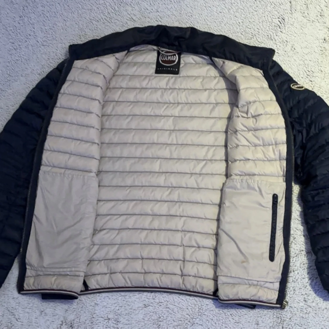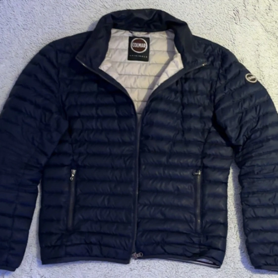 Säljer nu min mörkblåa dunjacka från Colmar med stilren design. Jackan har två praktiska fickor med dragkedja och en ljus insida. Perfekt för kyliga dagar på höst, vinter och tidig vår. Jackan har en clean look med diskret logga på ärmen. Priset är 1200 men inte hugget i sten, det kan diskuteras vid snabb affär! Tveka inte på att höra av er vid minsta fråga!
