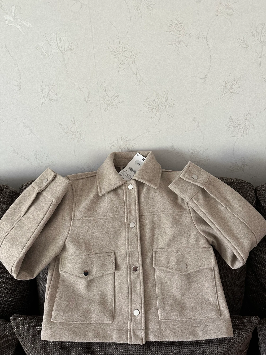 En jättefin kort jacka från Zara! Aldrig använd (prislapp kvar) nypris 399kr plus frakt mitt pris 240kr +frakt Grå/beige färg