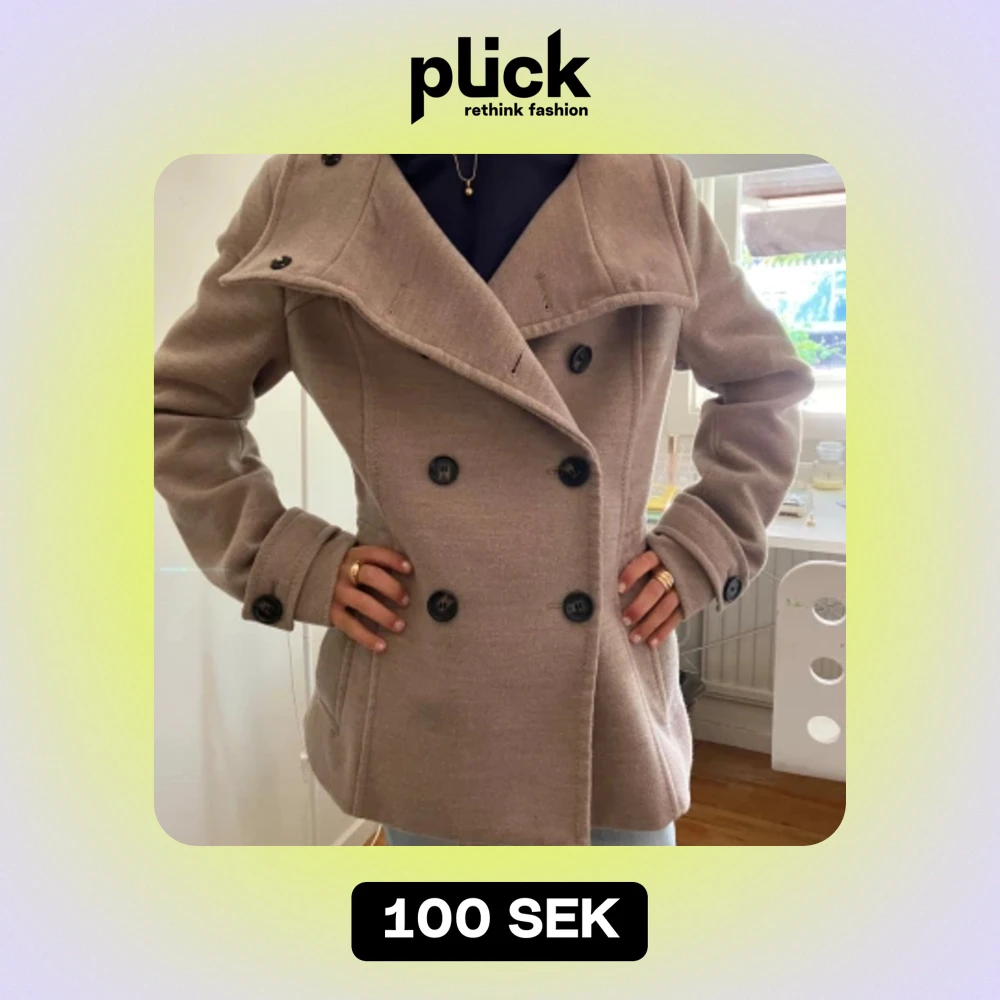 Säljer en snygg beige kappa från H&M i storlek 38. Den har en dubbelknäppt design med svarta knappar och en stilren krage. Jackan är långärmad och har en dekorativ knappdetalj i ryggen. Perfekt för höst och vår!