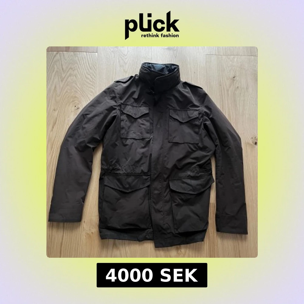 Säljer en mörkbrun fieldjacka från Herno med fyra stora fickor framtill och hög krage. Jackan är tillverkad i polyester och polyamid, med foder i polyester och bomull. Perfekt för dig som gillar stilren och funktionell design. Är i jättefint skick. Skriv gärna om du undrar något.