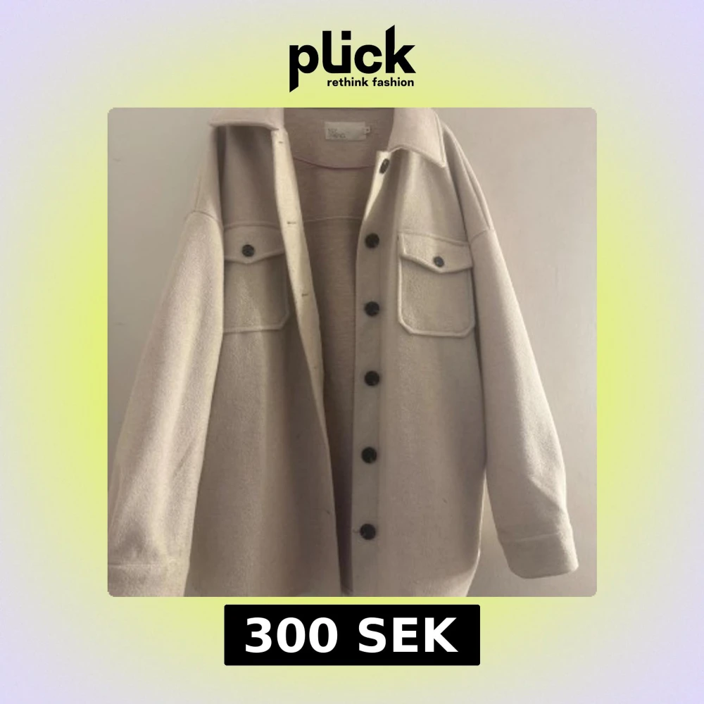 Kappa i beige från NLY Trend med klassisk krage, stora bröstfickor med lock och svarta knappar framtill. Jackan har en loose passform och är tillverkad i ett mjukt, ull-liknande material. Nelly kappa – stl 34 och passar även en 36:a. Materialet är lite luddigt och det finns några små defekter/slitage (syns på bilderna), men kappan är fortfarande väldigt fin och användbar för höst!!🍁OBS!! Bandet saknas