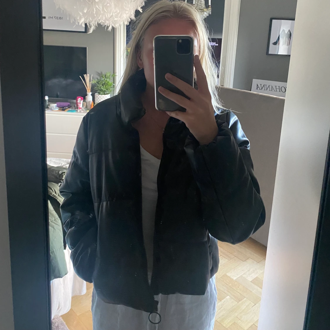 Puffjacka i skinn från NAKD, köpt för två årsedan men sparsamt använd. Nypris 599 kr