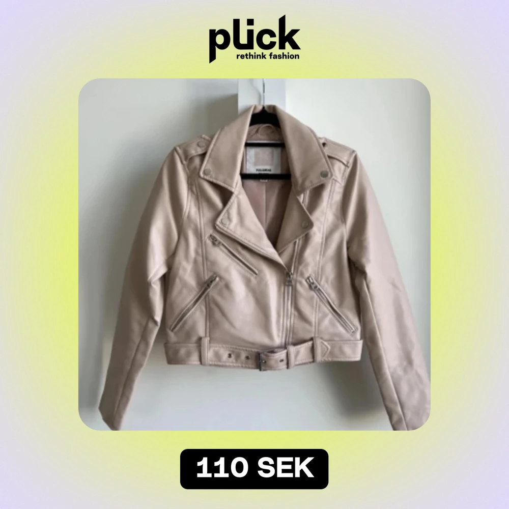 Säljer en snygg beige skinnjacka från Pull&Bear. Den har en cool bikerstil med dragkedjor och ett bälte i midjan. Jackan är långärmad och perfekt för höst och vår. Den är i bra skick och redo för nya äventyr!