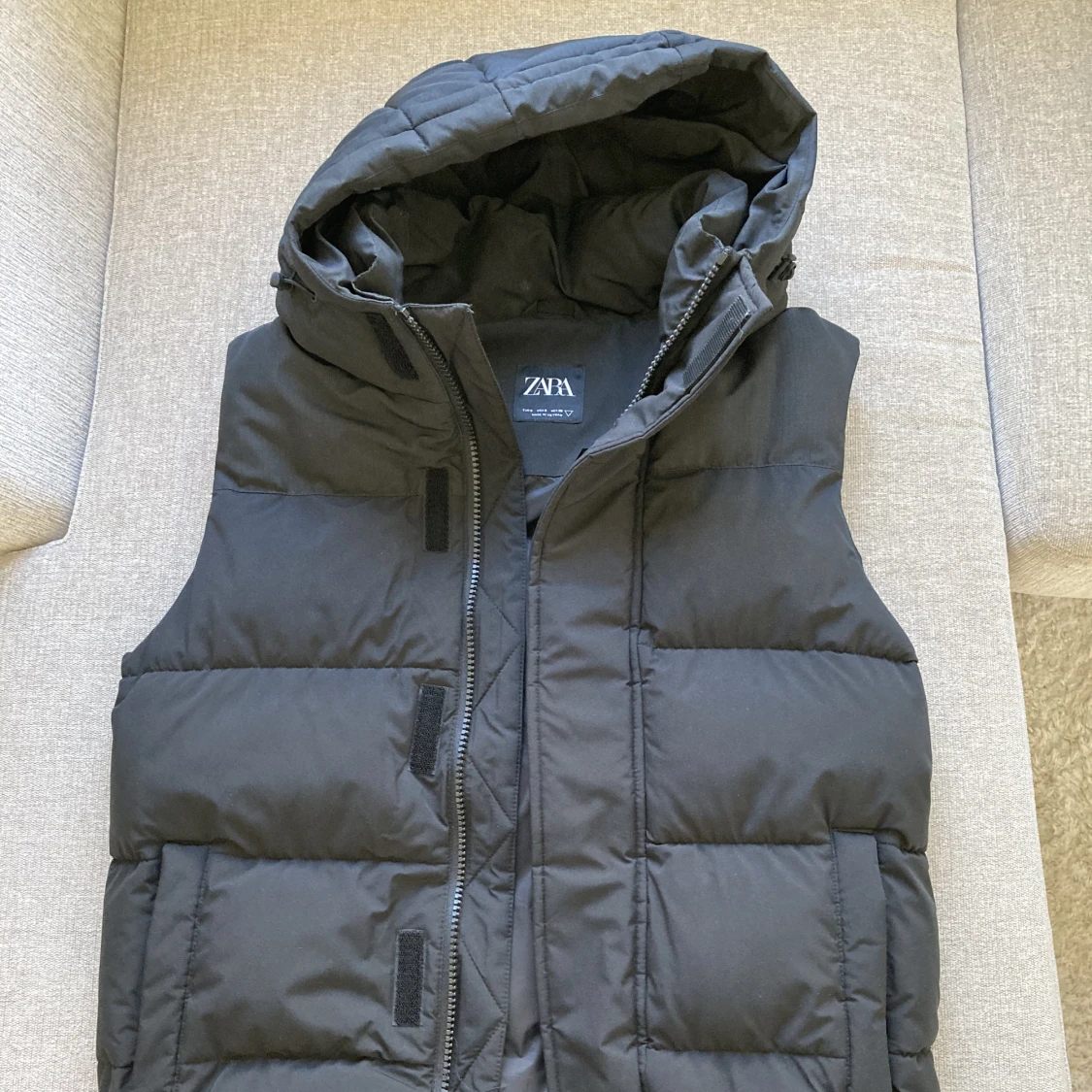 Säljer en Zara Väst med Luva då den bara hängt i garderoben sen jag köpte den så den är i nyskick. Storlek S men passar även M. Kan gå ner i pris vid snabb och smidig affär tveka inte på att skriva om du har några frågor!