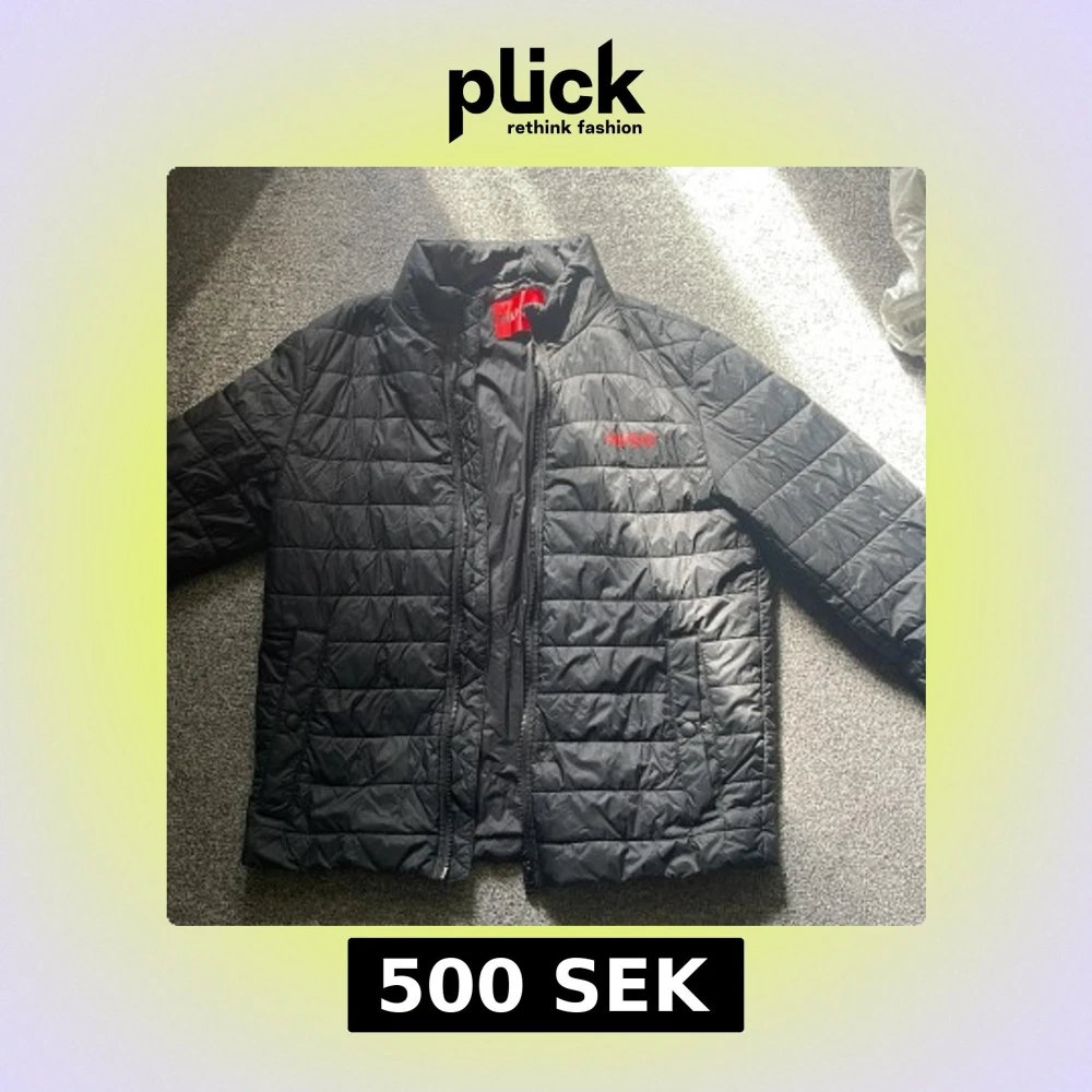 Säljer en svart quiltad jacka från Hugo med diskret röd logga på bröstet. Jackan ligger på ungefär 2400kr och har storleken S . Qr Kod finns och man ser på bilden alla taggar och den är 100% äkta