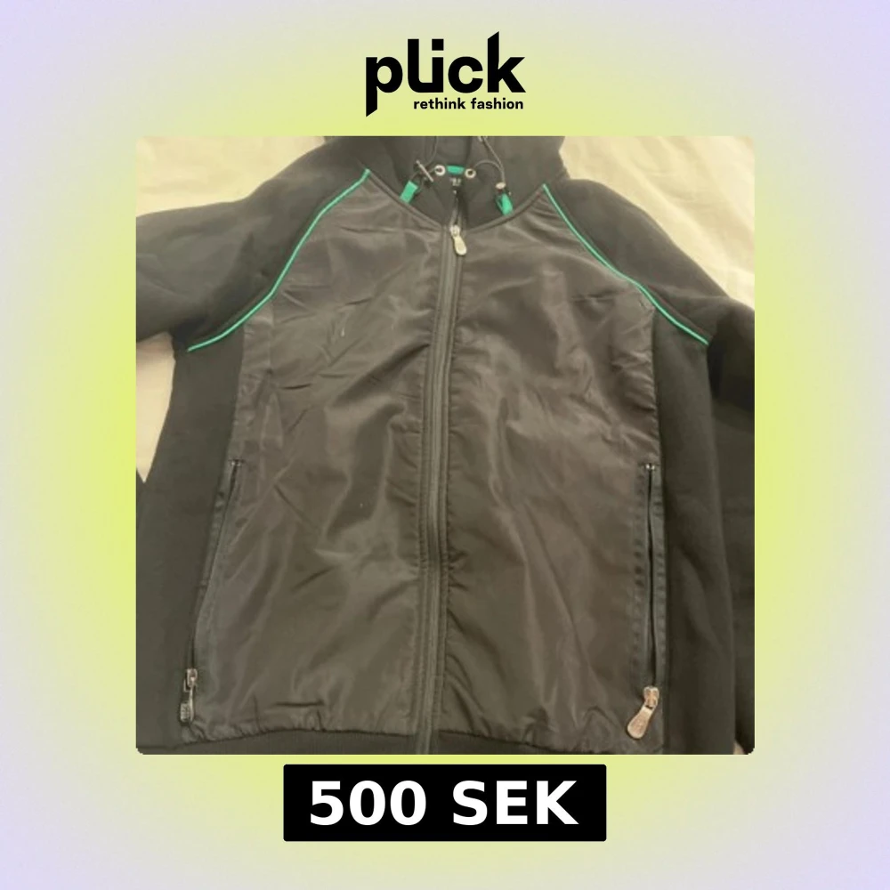 Svart vindjacka från Hugo Boss med gröna detaljer längs axlarna och huva. Jackan har dragkedja framtill, två sidofickor med dragkedja och en snygg sportig look. Materialet är polyester och bomull, perfekt för dig som gillar stilrena och funktionella plagg.