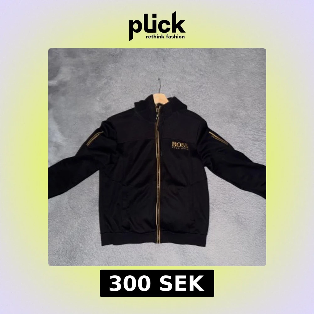 Svart hoodiejacka från Hugo Boss med guldfärgade detaljer och dragkedja. Jackan har huva, långa ärmar och fickor med dragkedja på ärmen. Boss-logga i guld på bröstet och insidan har guldfärgad kant. Perfekt för en clean och stilren look.