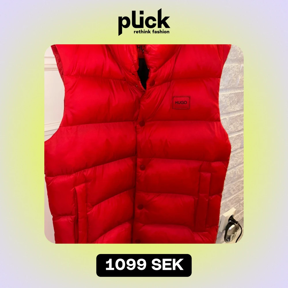 Säljer en snygg röd dunväst från Hugo i mycket bra skick. Västen har en quiltad design och stängs med knappar. Perfekt för höst och vinter när du vill hålla dig varm och stilren. Passar både till vardags och festliga tillfällen. Ordinarie pris 2199 kr.