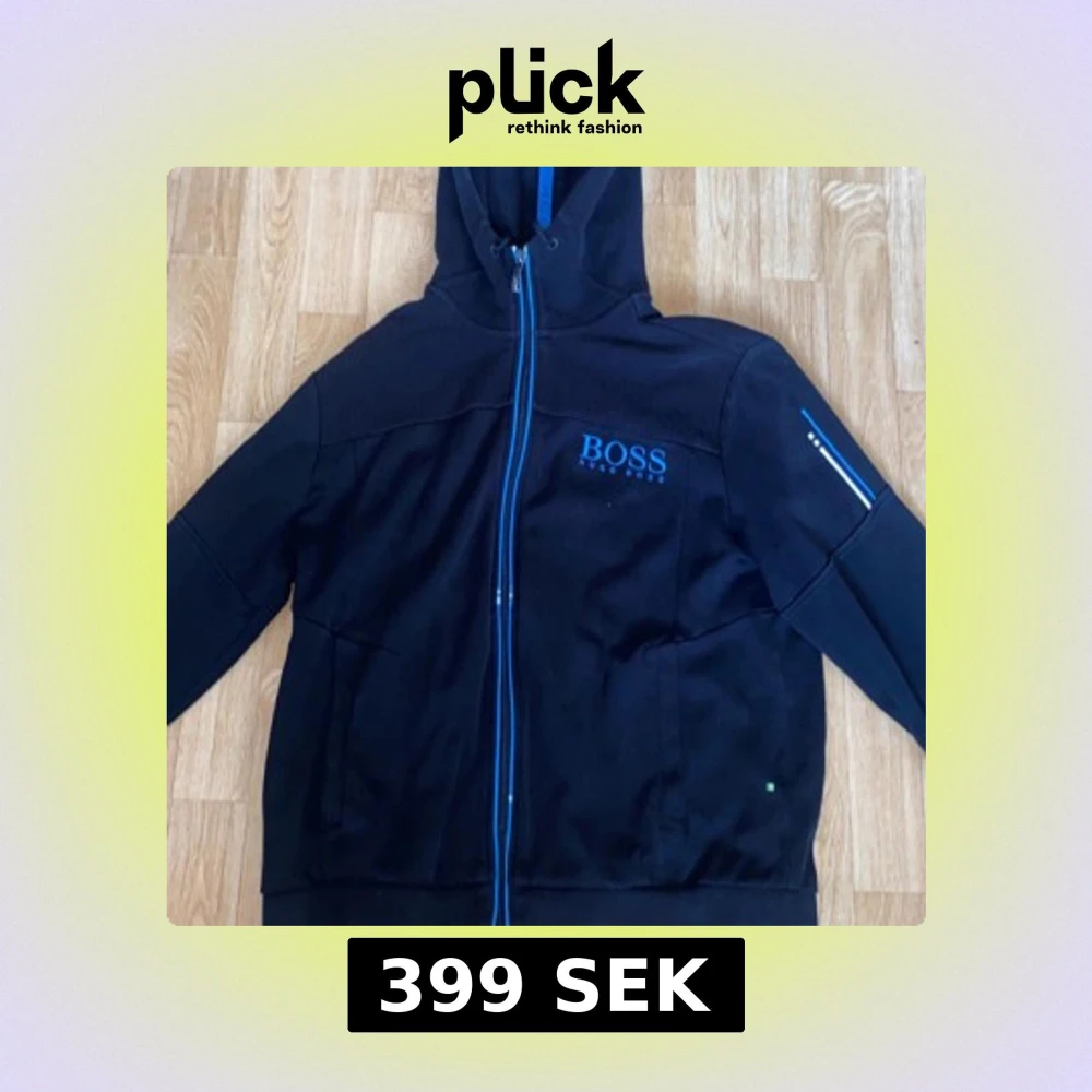 Svart hoodiejacka från Hugo Boss med blå detaljer och logga på bröstet. Jackan har hel dragkedja framtill, huva och sportig känsla. Regular fit och tillverkad i mjukt material, perfekt för chill dagar eller när du vill ha en clean streetstyle.