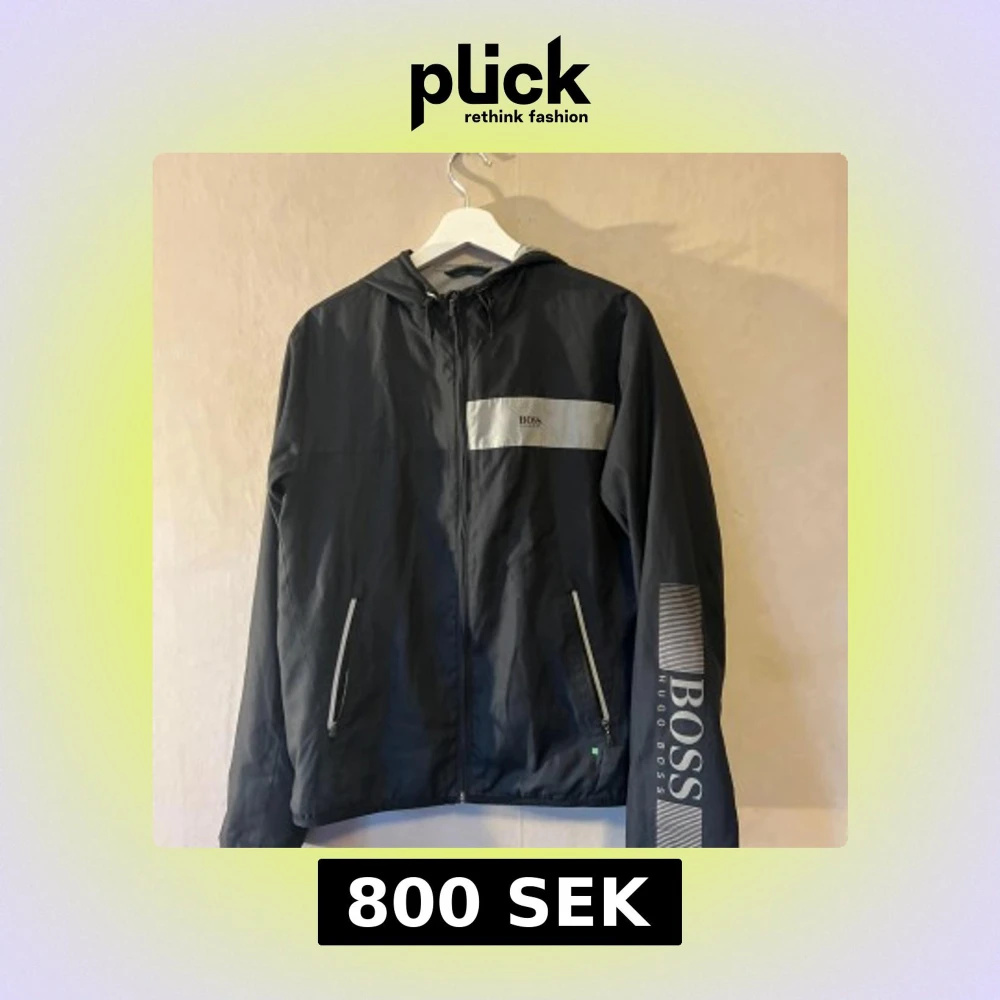 Svart vindjacka från Hugo Boss med huva och dragkedja framtill. Jackan har gråa detaljer på bröstet och ärmarna, samt tydlig BOSS-logga på vänster ärm. Två fickor med dragkedja och regular fit. Perfekt för blåsiga dagar och snygg streetstil.