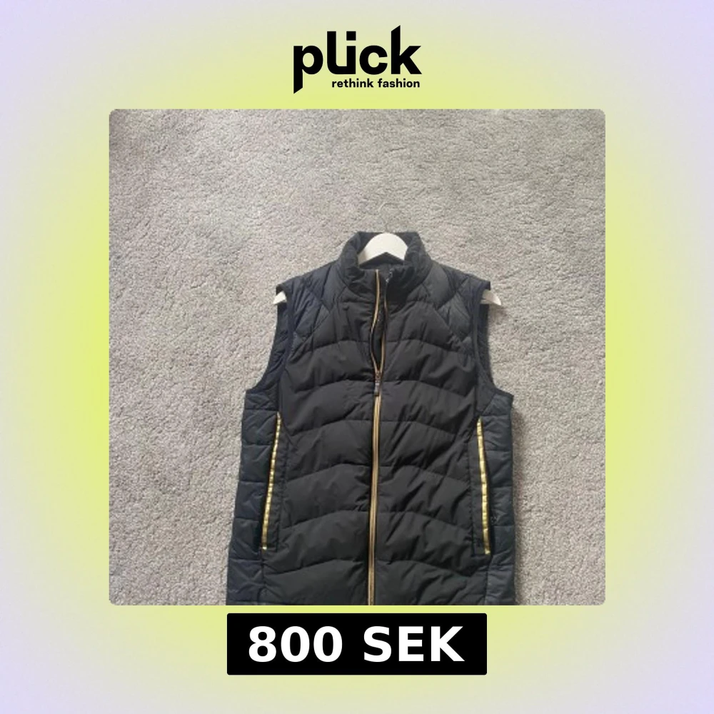 Hugo boss Snygg svart dunväst med guldiga dragkedjor framtill och vid fickorna. Västen har hög krage och quiltad design som ger en sportig och modern look. Perfekt att slänga över en hoodie eller tröja när det är kyligt ute.