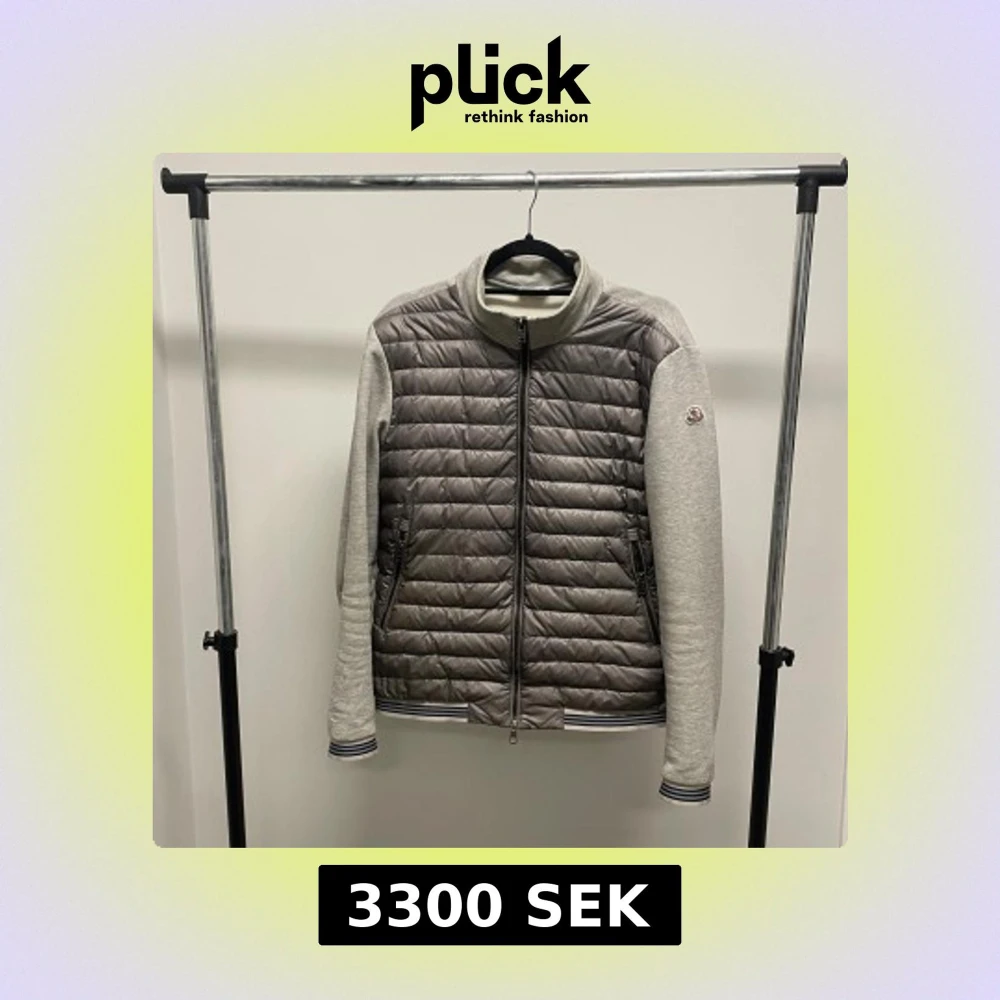 Grå cardigan från Moncler i fint skick. Något missfärgad vid nacken, märks ej vid användning. Storlek L men Sitter som en M.