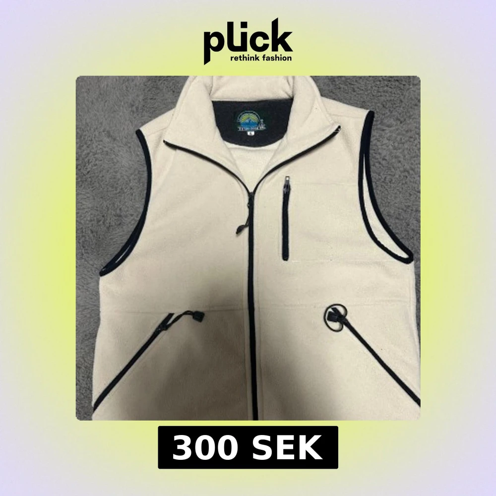 Beige fleeceväst från True North med svarta detaljer och dragkedjor. Västen har hög krage, tre fickor med dragkedja och svart kantband runt ärmhål och dragkedja. Perfekt för lager-på-lager och outdoor vibes. Den är strl S men passar en större M och L.