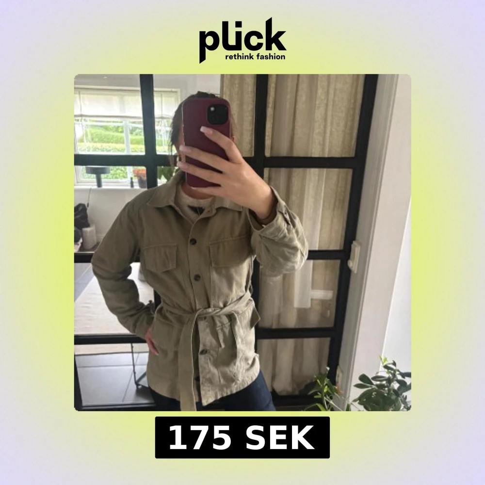 Snygg olivgrön jacka med knappar framtill, två bröstfickor och knytskärp i midjan. Jackan har klassisk krage och är tillverkad i bomull, perfekt för lager-på-lager. Passformen är normal och ärmarna är långa. Enkel och stilren look som funkar till det mesta.