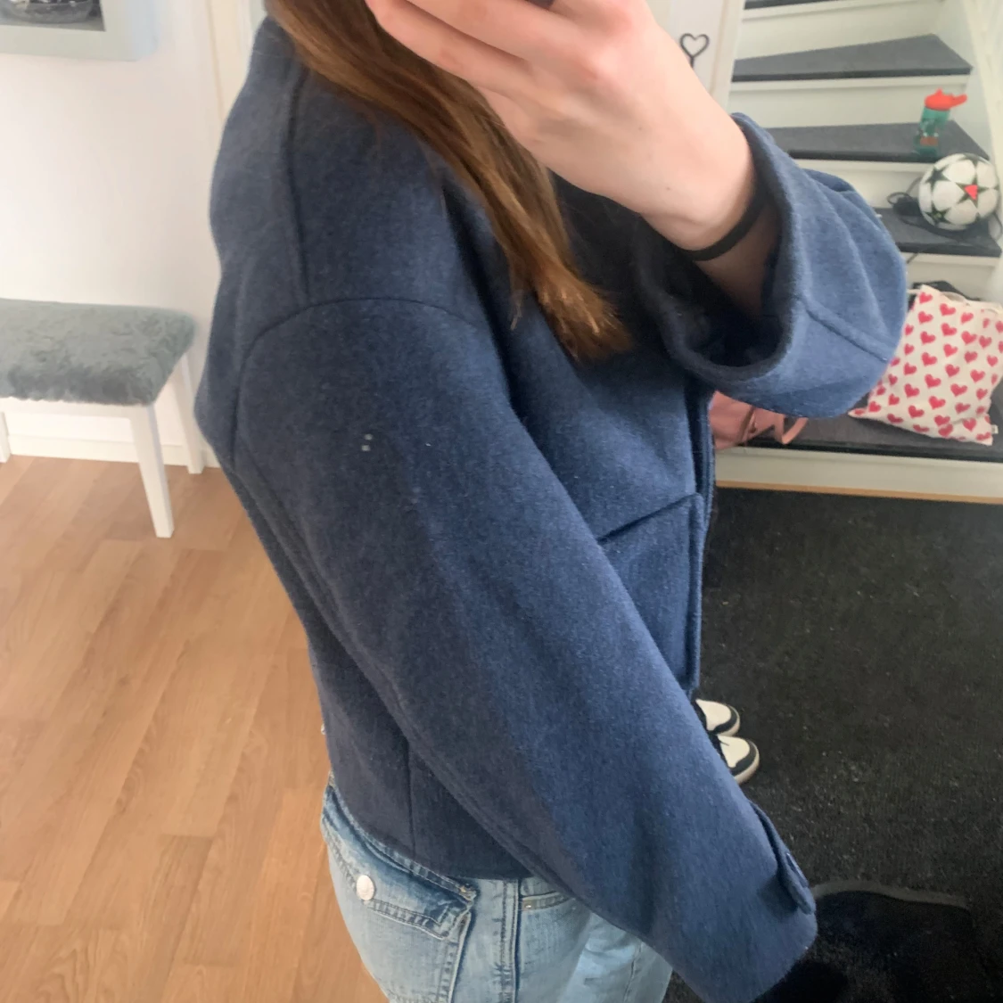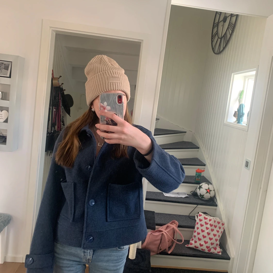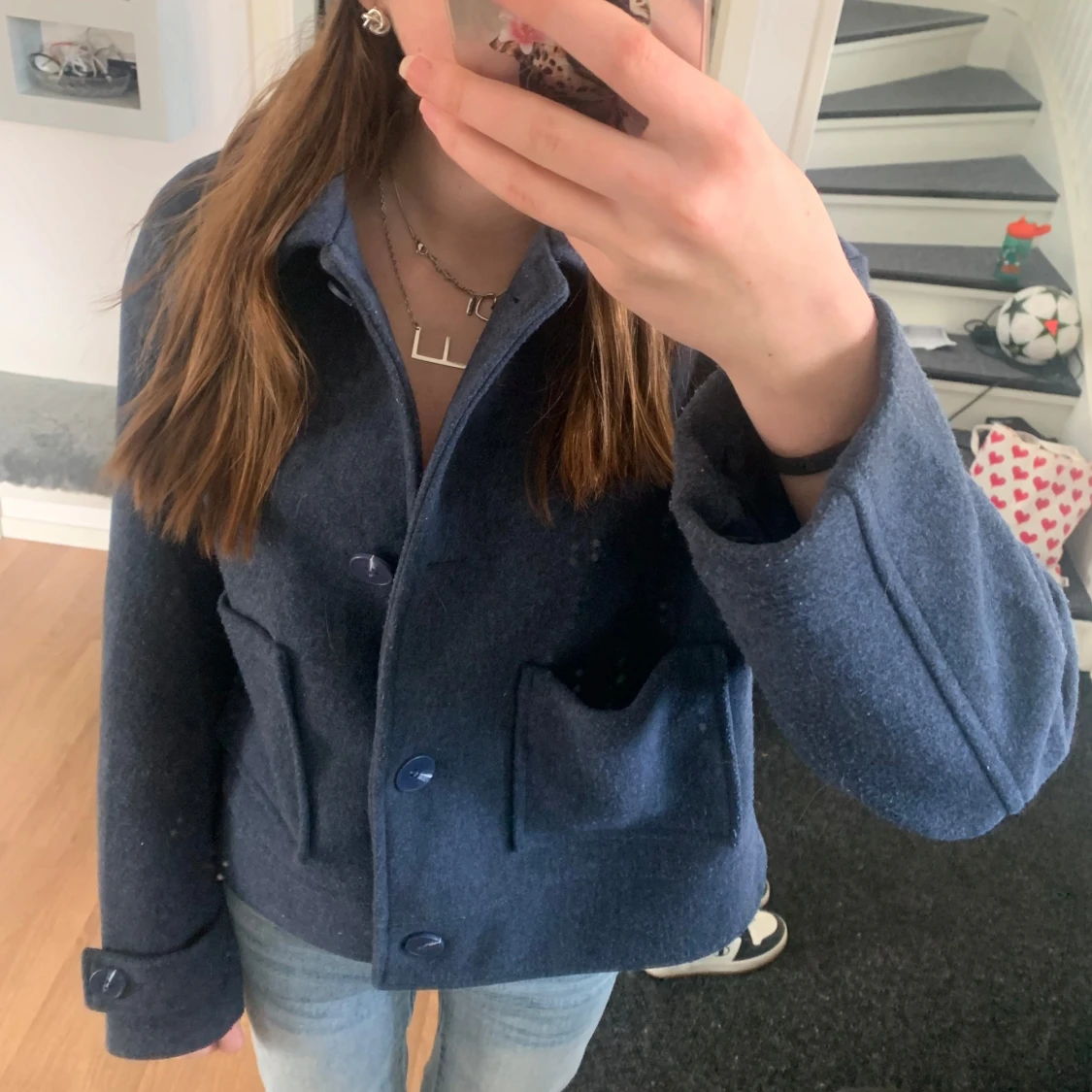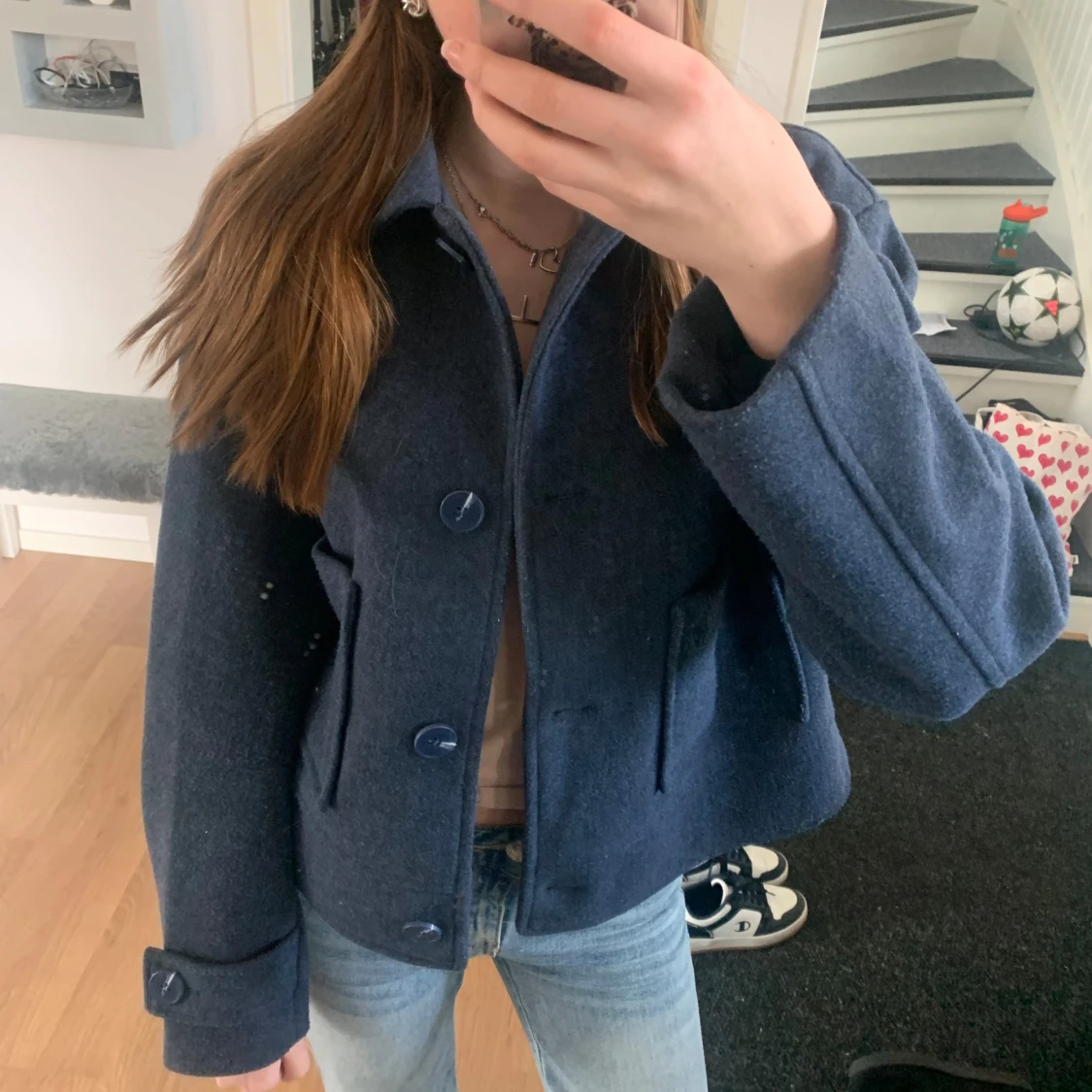 Säljer den trendiga vår kappan från lager!😍✌️Den har en fin marinblå färg men knappr istället för dragkedja!