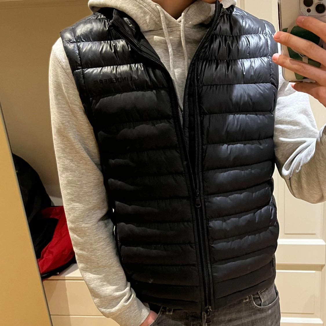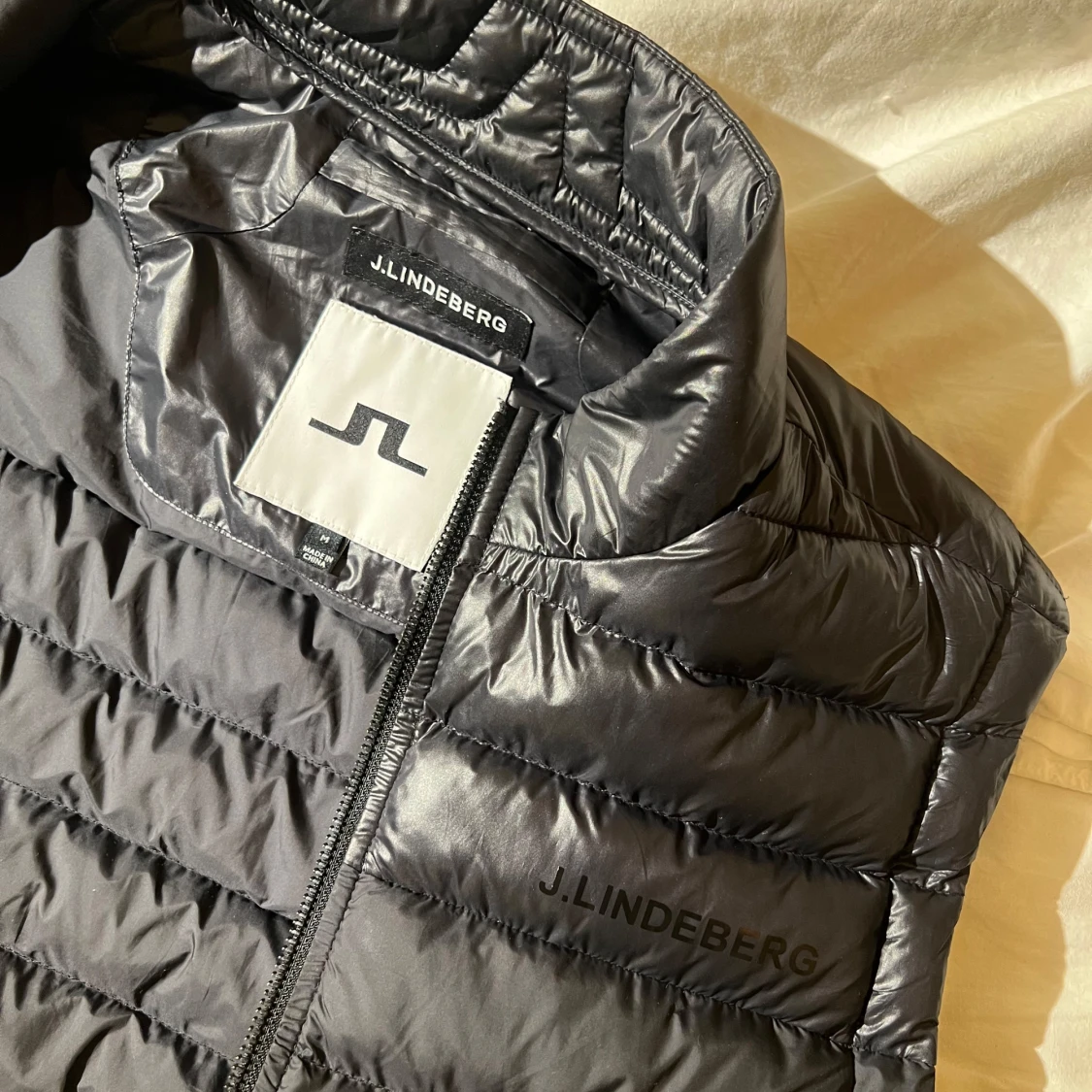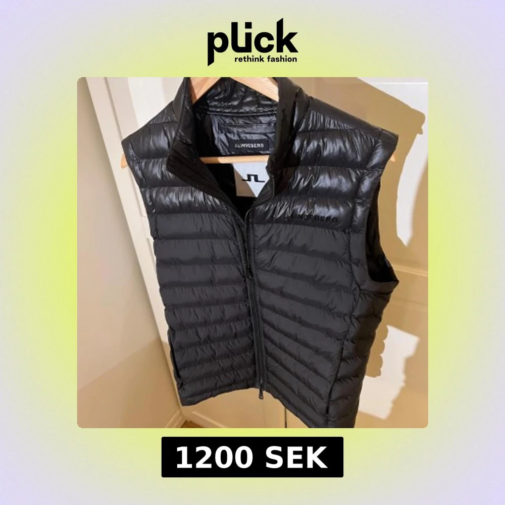 Snygg svart, lite glänsig dunväst från J.Lindeberg med dragkedja framtill. Perfekt nu till våren. Västen har en stilren design med diskret logga på bröstet. Köpt för 1800 kr och använd endast ett fåtal gånger! Skriv gärna vid minsta fundering!🤗