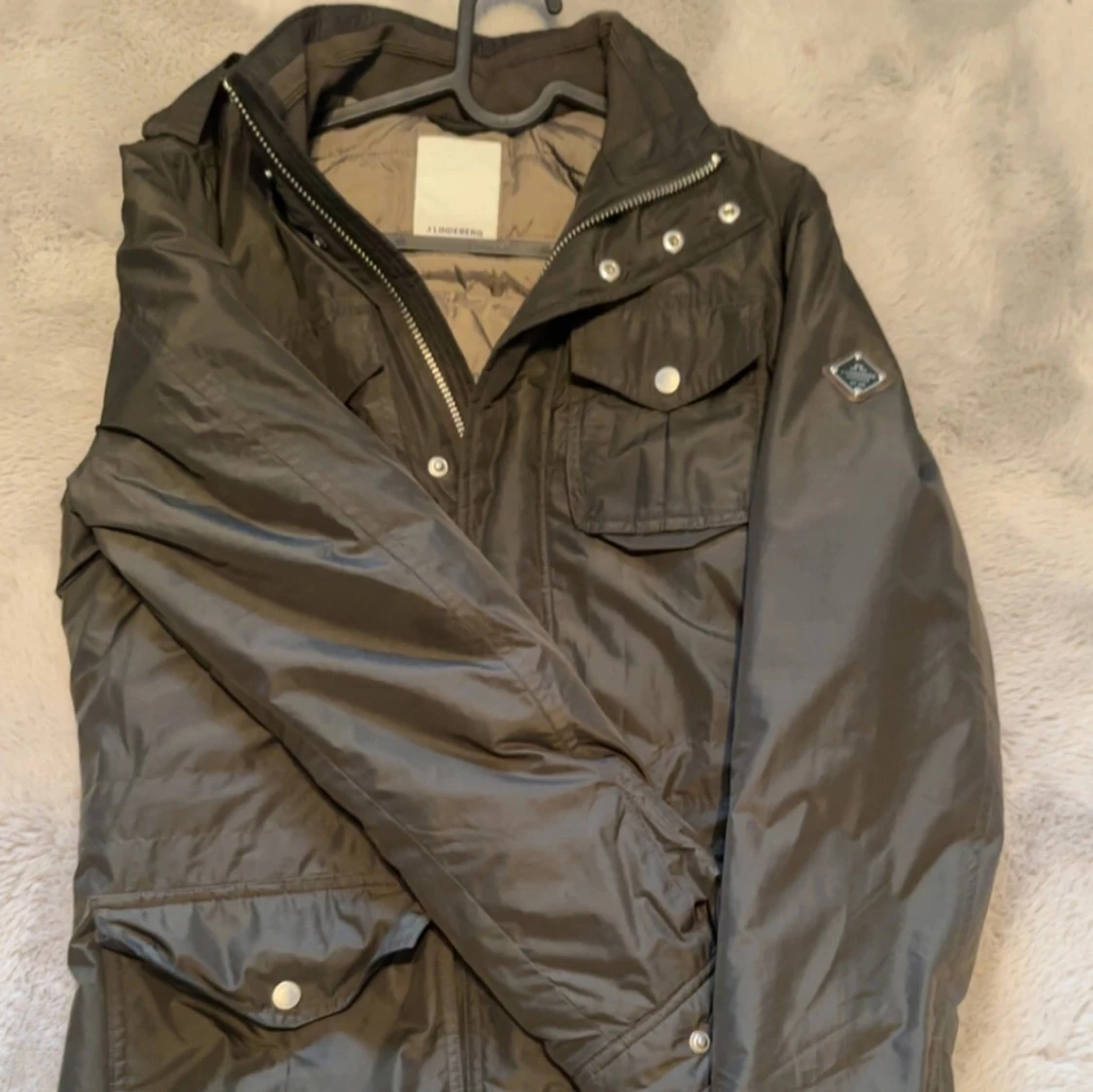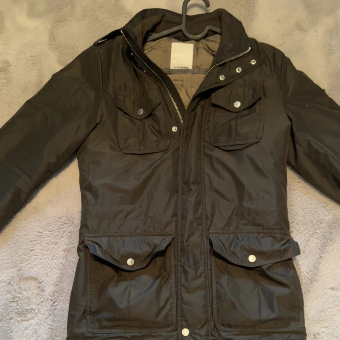 Tja säljer nu denna snygga mörkgröna jacka från J.Lindberg med dragkedja och knappar framtill. Jackan har flera praktiska fickor.