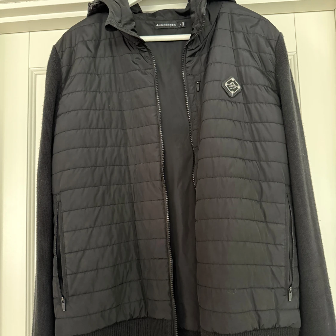 Cardigan från J.lindeberg storlek L skick 8/10 nypris 3200kr modellen är 188 och väger 75kg