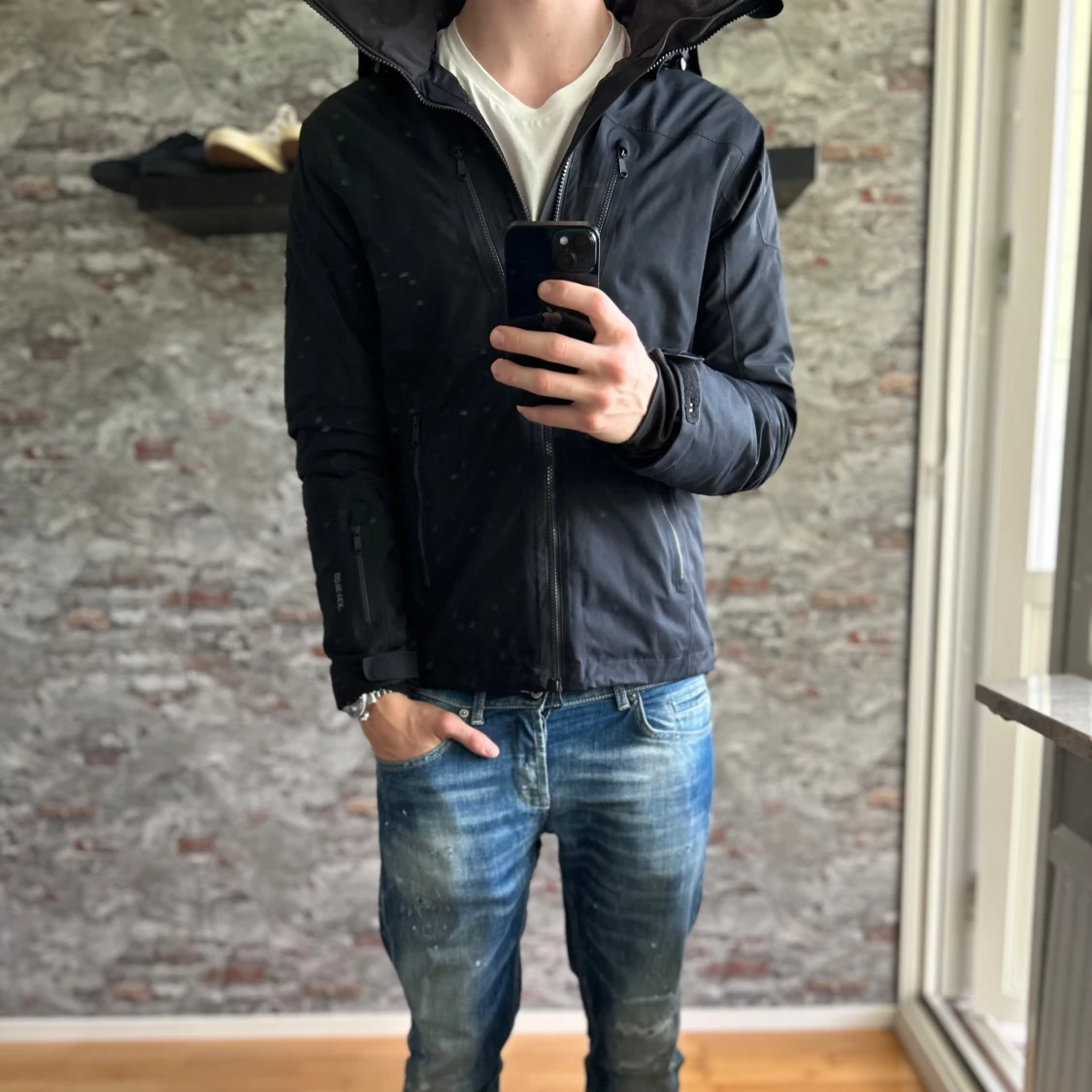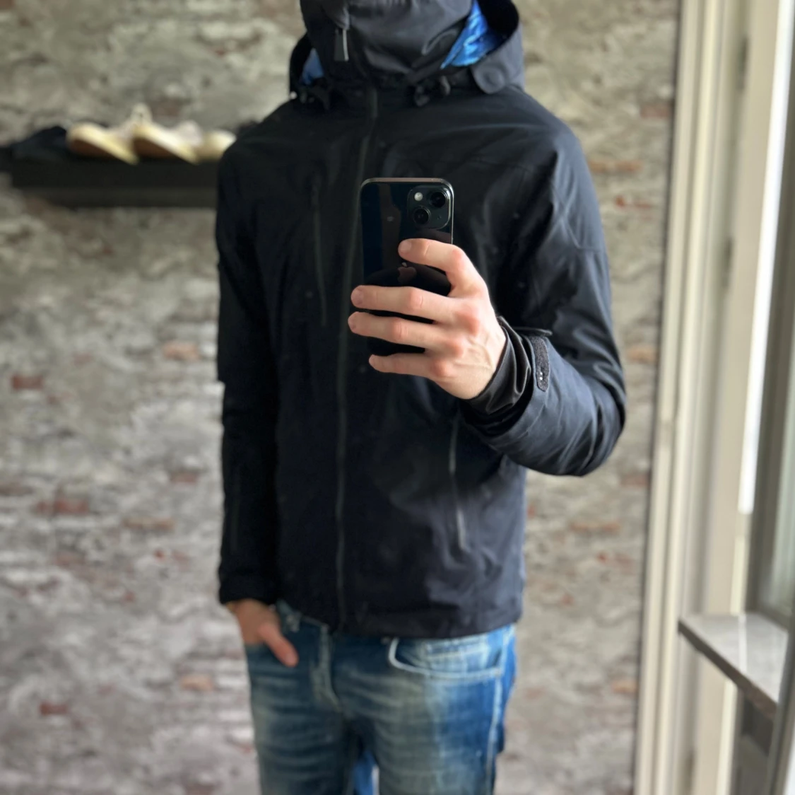 Mycket fint skick, ytterst lite missfärgad vid nacken men annars felfri!. Storlek S passar dig som är mellan 178-188cm. Nypris ca 4000kr. Modellen är 185 cm, 79 kg. Passar bra nu till höst/vinter. Skriv för mer information!🤝